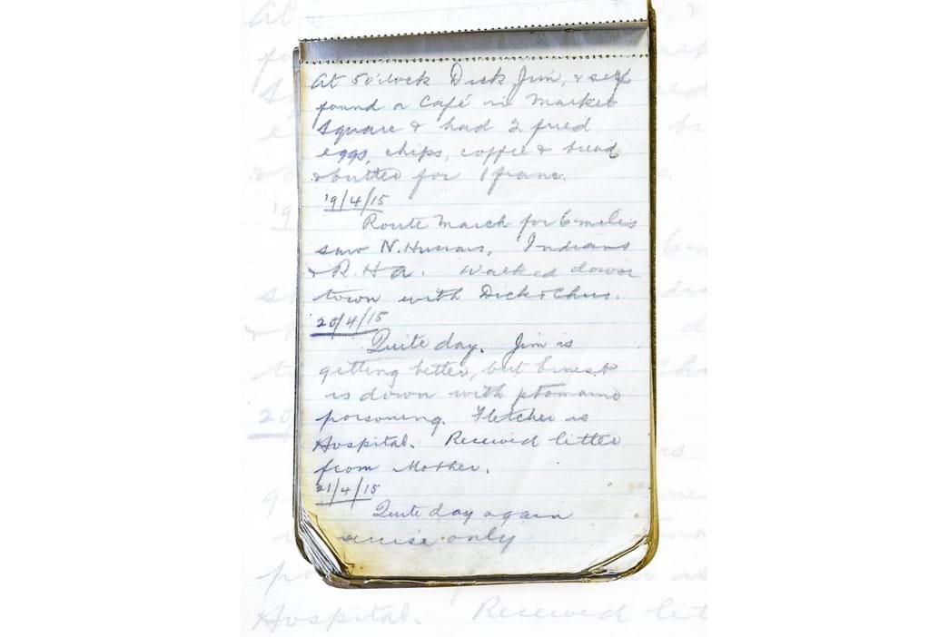 A further interesting diary in the sale is a First World War ‘Trench’ Diary written by an unknown Yorkshire soldier (estimate: £150-250). The writer, thought to have been a signaller in a Royal Artillery company attached to the 49th West Riding Division, details life in France beginning with the journey to Le Havre on 12th April 1915, and going on to note details of laying signals, handling horses, visiting towns and villages, meals, injuries, shelling and the mud and rain. The diary ends abruptly on 19th December 1915 with an entry regarding a gas attack. This coincides with the first use of Phosgene gas against British Soldiers, in which the 49th (West Riding) Division was attacked north of Ypres.