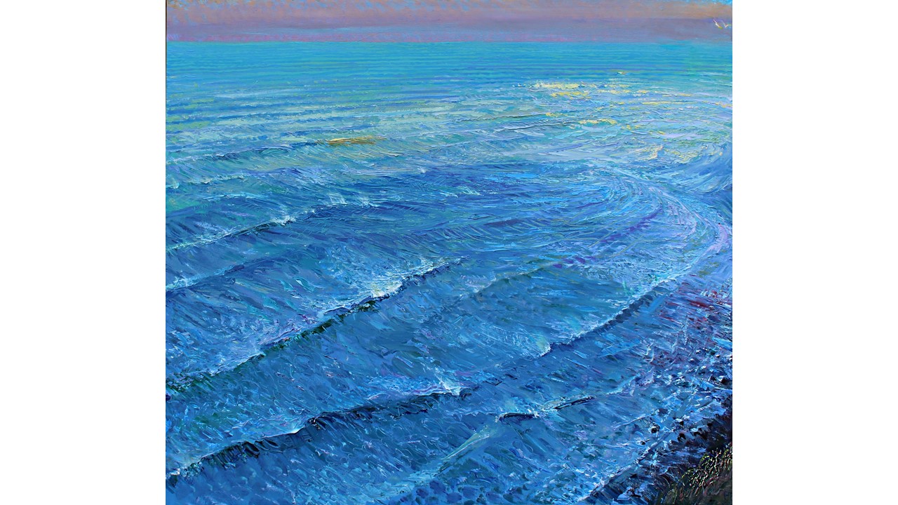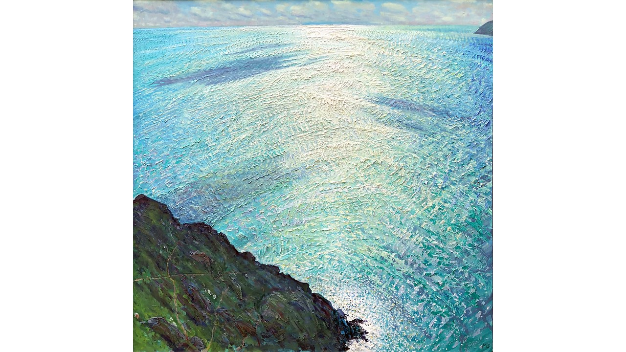 Browne says of his seascapes ‘A North-East sea can encourage me to raptures and offers endless inspiration whether provoked by storms or lying calm like a vast plain. I love to analyse and capture the exact yet subtle interactions of water and light, fleeting moments; sparkling light on water is a gift to the eye and the brush’.
