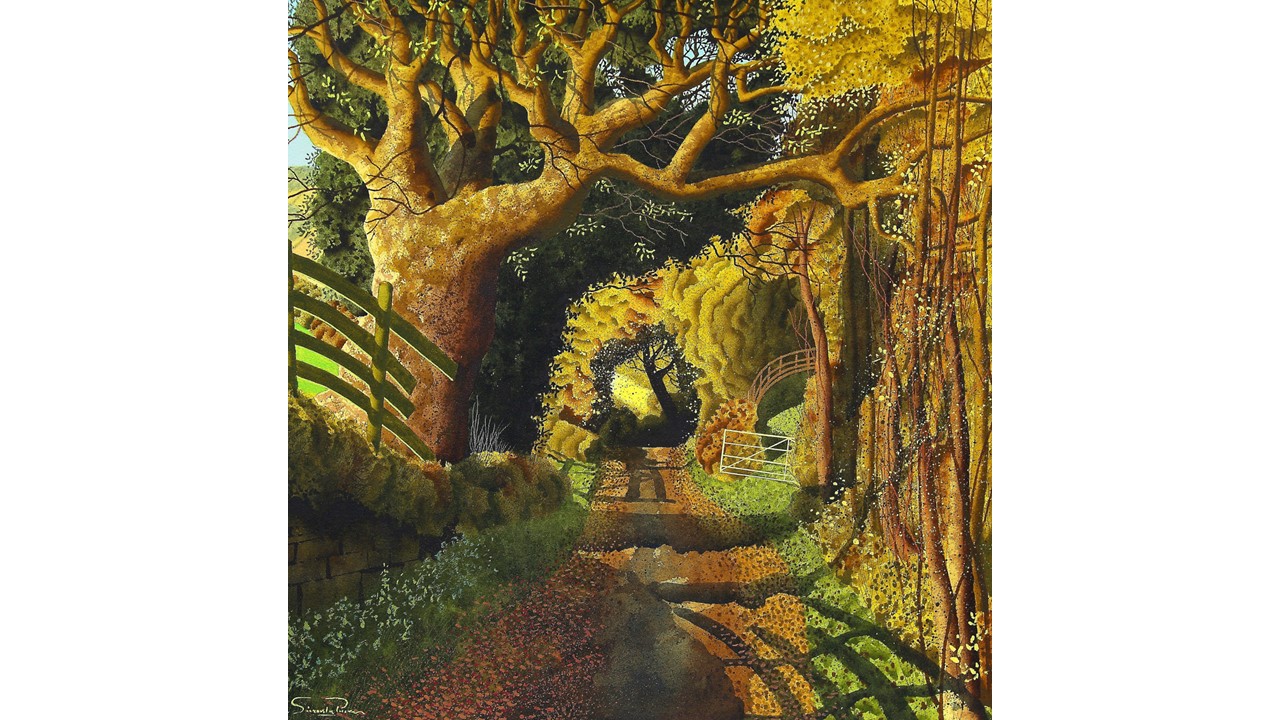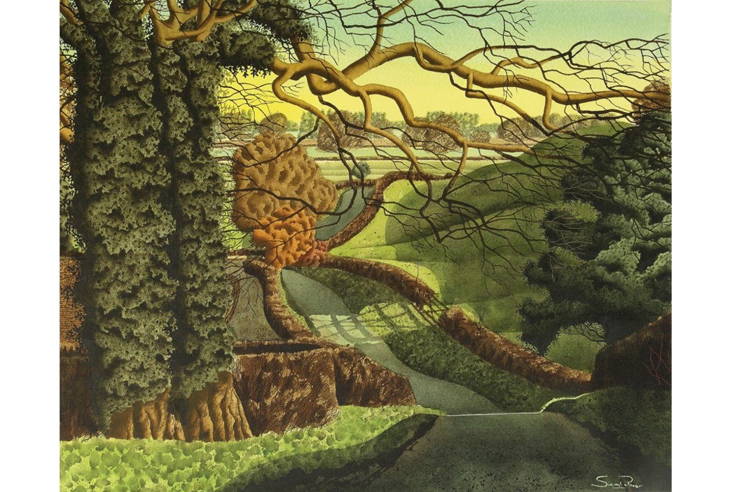 Simon is deeply rooted in the landscape of his home, a connection that shines through in his work. He captures the essence of the area with his distinctive style, that combines a rich yet harmonious colour palette, intricate tones and textures, and a dreamlike quality that is very much continuing the tradition of the great Post-War British landscape artists such as John and Paul Nash, Eric Ravilious and Graham Sutherland.