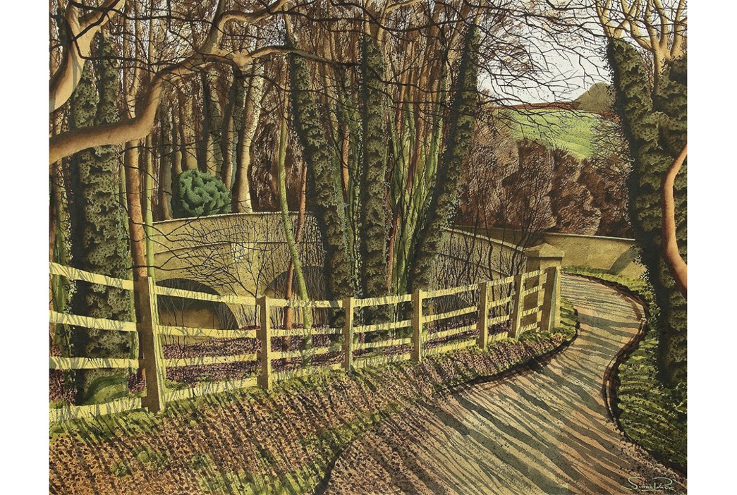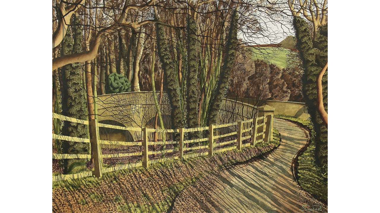 Further accolades include a retrospective, Territories of the Imagination, held in 2004 at the Mercer Gallery, Harrogate, receiving the Turner/Winsor & Newton Watercolour Award at the Royal Academy Summer Exhibition in 2007, being made an honorary member of the Royal Institute of Painters in Watercolours, and appointed to the position of Visiting Professor in Fine Art at the University of Suffolk in 2016. Simon has also exhibited with the National Trust, Crane Kalman Gallery, Bohun Gallery, the Yorkshire Sculpture Park, and Glyndebourne, and his work is held in numerous public and private collections around the world.