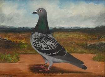 The birds in the portraits belonged to Mr George Nunns of Guisley, West Yorkshire, a mill owner and renowned breeder and flyer of homing pigeons and member of numerous flying clubs. He also bred and trained long distance homing pigeons for the services during both world wars. The paintings depict three of his champions, Shamrock, Rufford Beauty and Chumie. The vendor’s grandfather, Mr Ernest Hall, worked for Geo. Nunns and Son Ltd. and Nunn’s son Clifford when he took over his father’s birds.