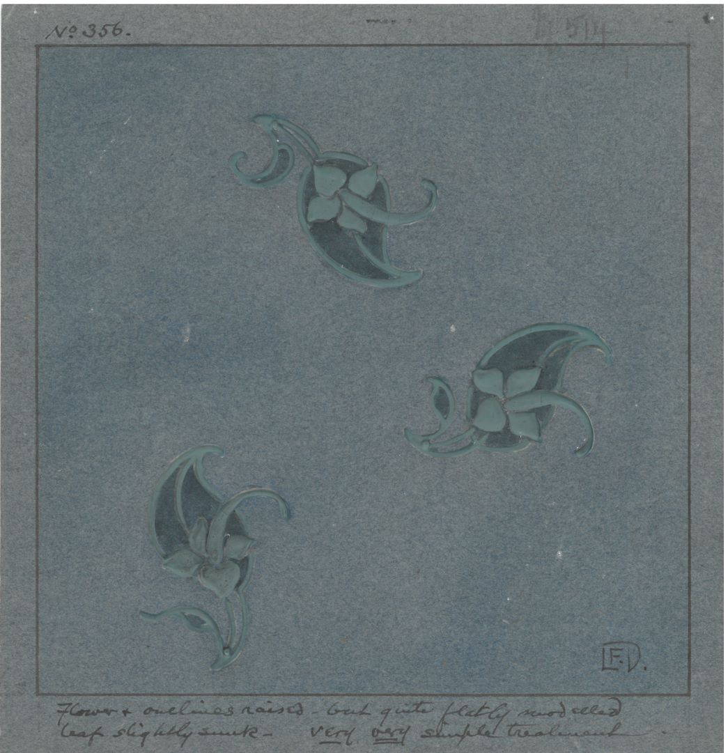 Finally, a collection of interesting lots of Pilkington’s Royal Lancastrian, which have descended through the family of Pilkington’s designer John Tabbron (1908-1993) is also of note. Tabbron worked at Pilkington’s in the Design department from 1923 to 1941 under Mr John Chambers and Mr T B Jones. Interesting pieces up for sale include a small archive of tile designs, fireplace designs and photographs and ephemera (estimate: £200-300), and a selection of vases, sample pieces and models.