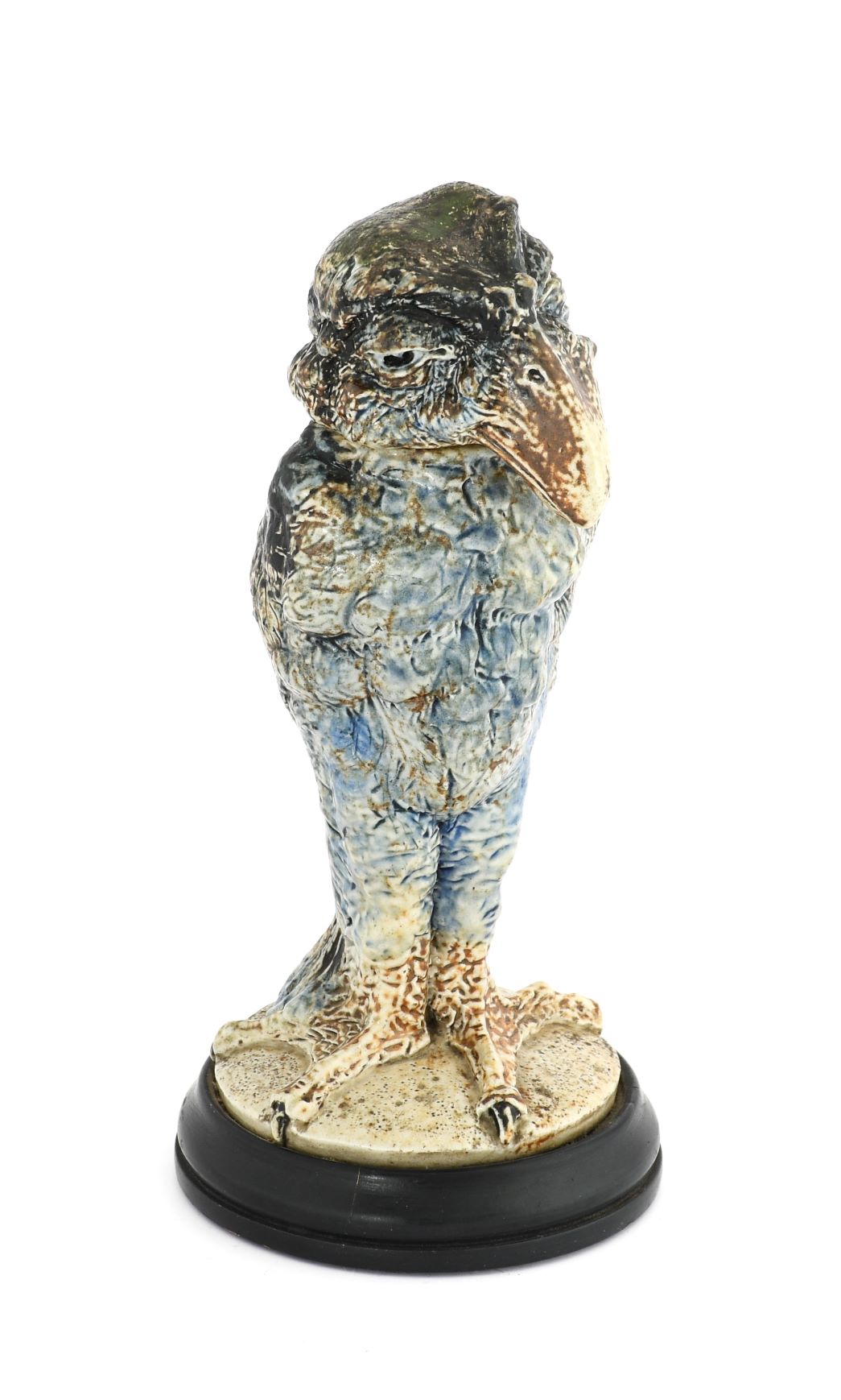 Martin Brothers is one of the most significant names in the history of Victorian art pottery. Four brothers, working in London, conjured up idiosyncratic, whimsical creations that would represent the peak of Victorian art pottery and the beginning of 20th century Studio Pottery. For collectors, their wares, which teeter between comical and dark, remain amongst the most sought-after pots two centuries on. However, it is their iconic ‘Wally Birds’ for which they are best remembered. Stoneware tobacco jars and covers by Robert Wallace Martin in the form of anthropomorphic birds, standing erect and full of character with sly expressions or mischievous grins. Often the birds represented figures from Victorian society, from barristers and admirals to urchins off the street. It is these birds that remain the most desirable pieces of Martinware on the market today, with the most characterful figures commanding the highest prices.