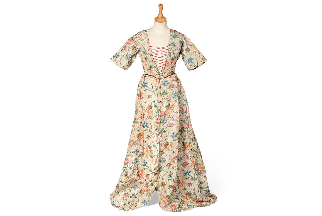 From rather closer to home comes a Private Family Collection from North Yorkshire consisting of 18th century costumes and accessories. Beautifully preserved in a family home, the collection includes a range of embroidered silk waistcoats, with one particularly fine example being a cream silk waistcoat dating from c.1780, embroidered in coloured silks with floral garlands and sprigs (estimate: £300-£500 plus buyer’s premium). Also of note is a fine hand painted Chinese silk robe, decorated in flowers with very well preserved colouring.
