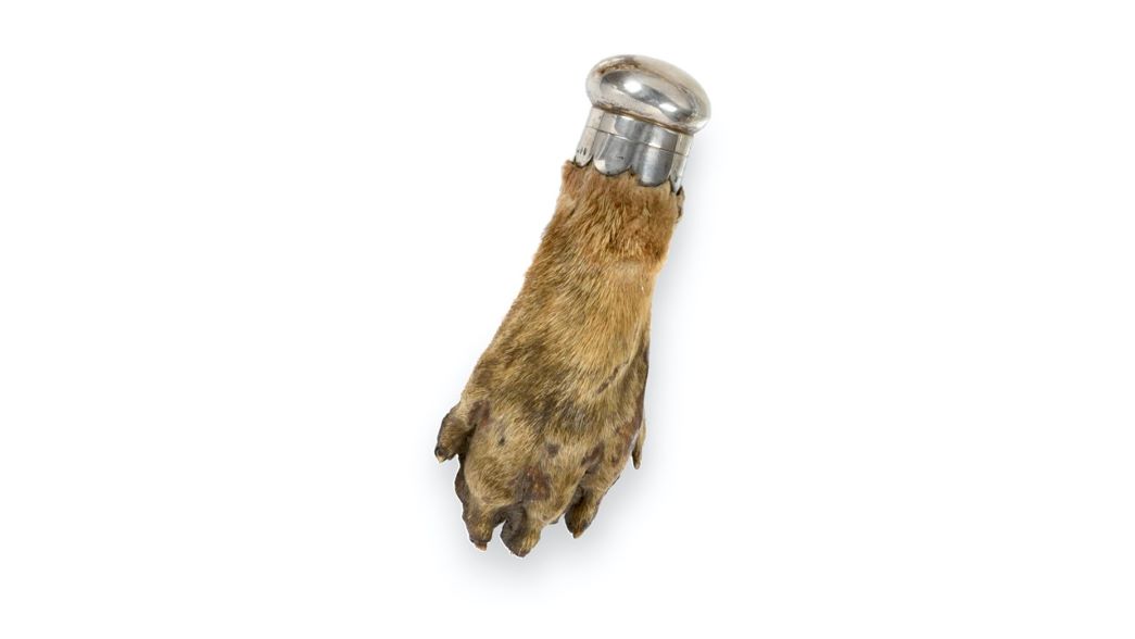 Also sure to spark the interest of collectors of curious items is a Victorian Silver-Mounted otter Paw Scent-Bottle. Whilst the maker’s mark is too worn to read, it was made in London in 1892 and retailed by legendary taxidermist Rowland Ward and Co. of Piccadilly. It is being sold in a lot with three other scent-bottles with an estimate of £100-150.