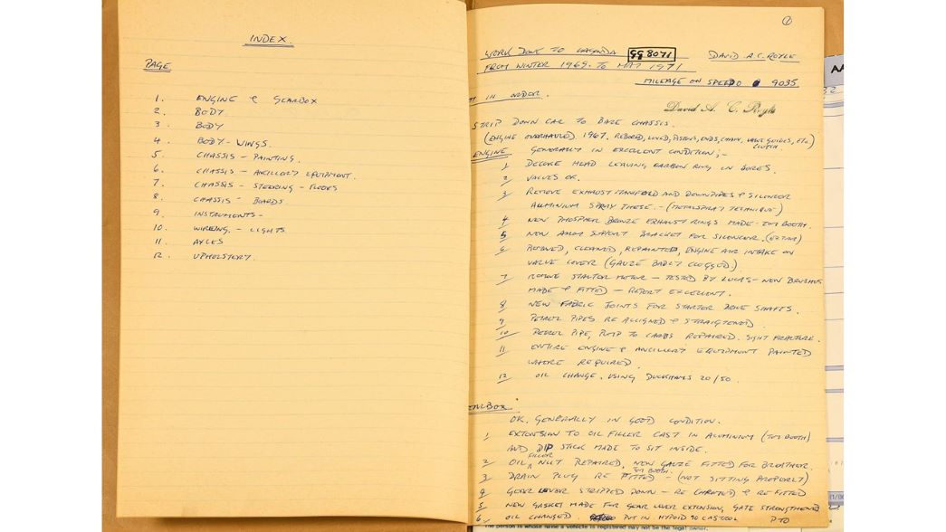 The car, which is painted in British racing green, was once owned by renowned vehicle restorer David A.C. Royle of County Durham and is sold with his handwritten record of all the work he undertook on the car between 1969 and 1971.