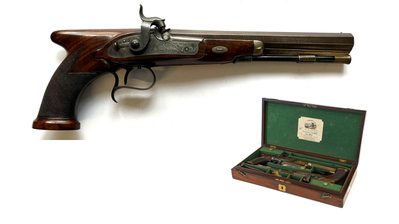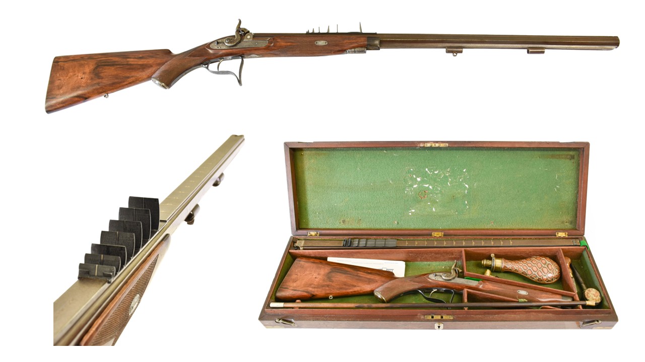 A rare 19th Century Percussion Single Barrel Big Game Rifle by William Powell & Son of Birmingham leads a selection of fine guns in the sale (estimate: £3,000-4,000). The .52 calibre gun has a 77cm octagonal russet steel barrel and is housed in a mahogany case monogrammed ‘WP’. William Powell’s are still a thriving business, and it is thought that they know of only one other example of this rifle, which is believed to be in the United States. Also on offer are a Pair of 19th Century 40 Bore Side-by-Side Double Barrel Percussion Travelling Pistols (estimate: £2,500-3,500), and a Deactivated Second World War Czechoslovakian VZ/37 7.92mm Heavy Machine-Gun or Kulomet (estimate: £1,200-1,800).