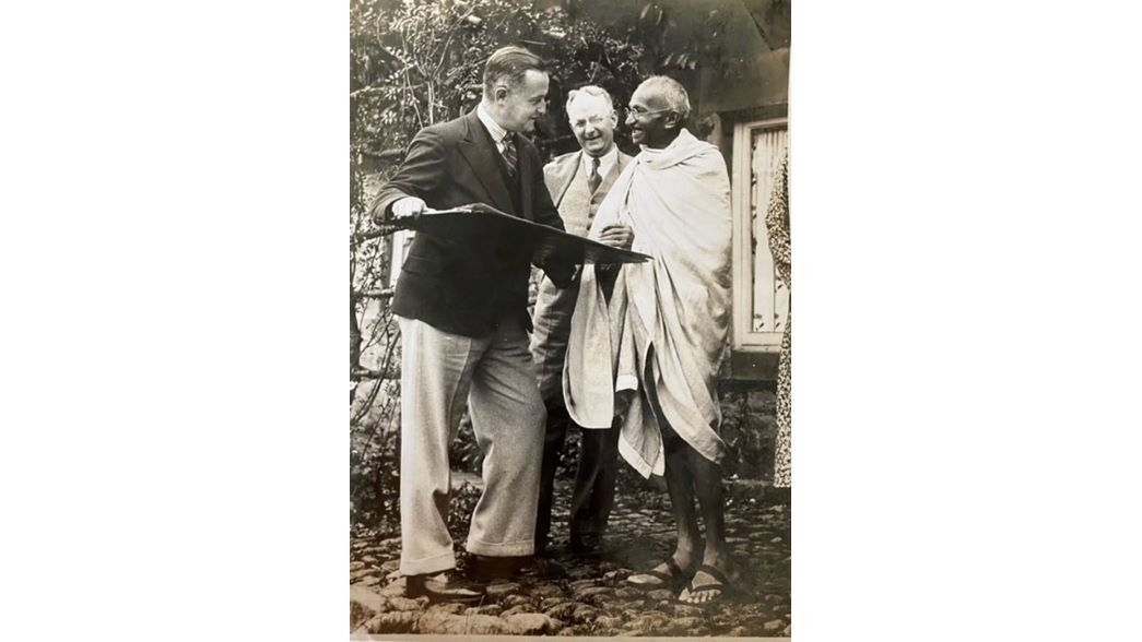 He also met Mahatma Gandhi during Gandhi’s tour of the north of England in 1931, and he asked Gandhi to sign a recently completed drawing of himself by the Leeds artist Jacob Kramer. A lithograph of the signed drawing is held in the collection of the National Portrait Gallery. George later invited Gandhi to contribute to The Heaton Review, but by this time Gandhi was back in India and had been imprisoned in Poona (now Pune) so wrote a letter in reply from jail regretting that he was not permitted correspondence with newspapers and reviews.