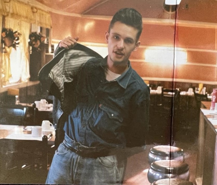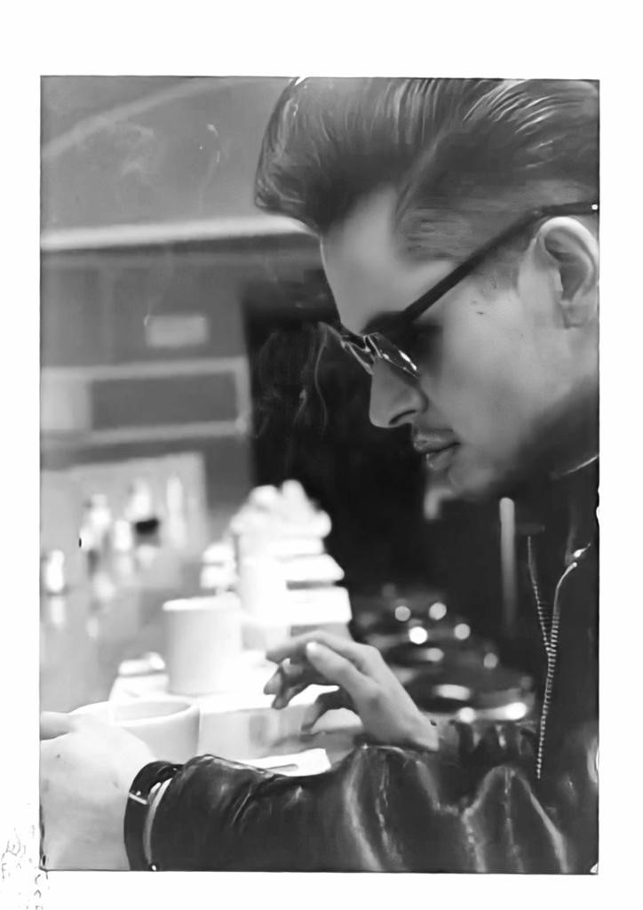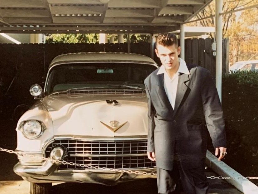 Peter Leathers was fascinated by the 1950s and was a devotee of the era from his childhood in Durham. Indeed, under the influence of his teddy boy uncles, he had two teddy boy suits made in yellow and red aged just 14. Aesthetically minded and fascinated by fashion, he went on to a establish the designer label Peter Hoggard with his partner Michelle Hoggard; established in 1983, the company’s success led them to open their own outlet in London’s Hyper Hyper store in 1985 before taking part in British Fashion Week the following year and opening their own shop in Rupert Court, Soho, London in 1987. Peter Hoggard created cutting edge designs for young British fashion icons until the early to mid-90s.