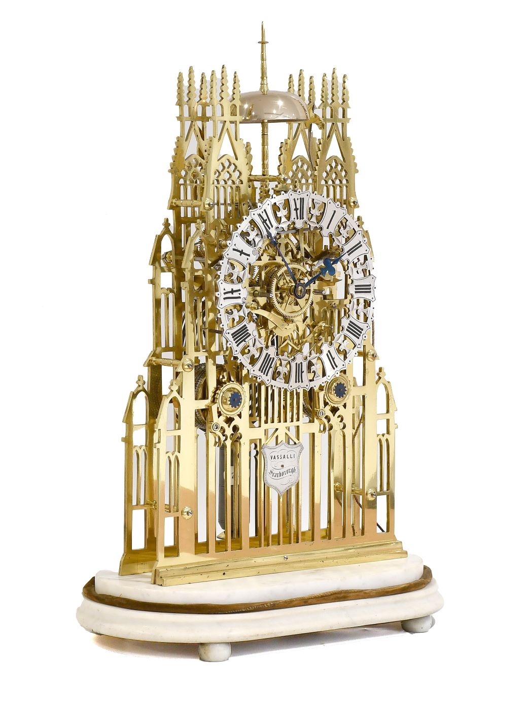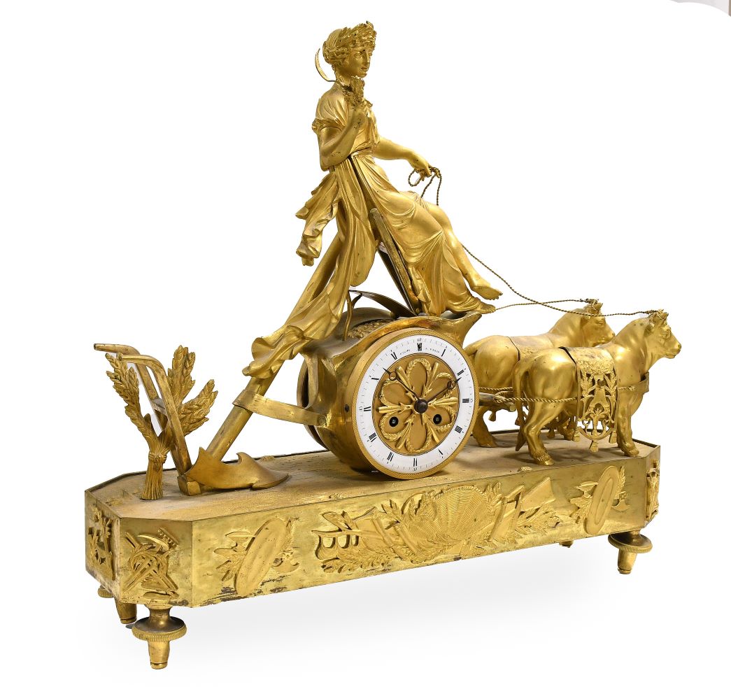 Selling well, too, were an unusually small Hook and Spike Alarm Lantern Clock signed Tho. Wheeler of London and dating to the late 17th century (sold for £3,500), a French Ormolu Striking Mantel Clock by Filon À Paris, circa 1800 in the form of a lady ploughing (sold for £5,500), and a good York Minster Form Skeleton Striking Mantel Clock by Evans of Handsworth and retailed by Vassalli of Scarborough (sold for £2,800). A Rare and Early ‘Herbert Scott’s Design’ Electric Mantel Timepiece made circa 1910 sold well, too, at £1,400.