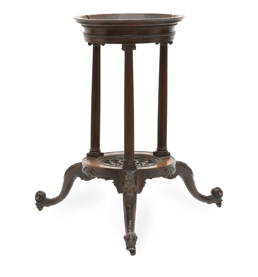 Leading the Furniture in the sale was a George III Chippendale-Style Carved Mahogany Stand; dating from the late 18th century, it was sold as part of The Property of Sir Brooke Boothby, ex Fonmon Castle and achieved a hammer price of £4,500. Selling well, too, were a Joined Oak Dresser from the 17th century (sold for £3,200), a Large George III Irish Mahogany Wake Table (sold for £3,200), and an imposing 19th century Mahogany, Satinwood-Crossbanded and Boxwood-Strung Circular Dining Table (sold for £3,200). A Mahogany Framed Tub Armchair in the manner of Gillows sold for £2,500, a Regency-Style Carved Giltwood and Composition Overmantel Mirror sold for £3,500, and an Ushak Carpet from Central West Anatolia sold for £3,500.