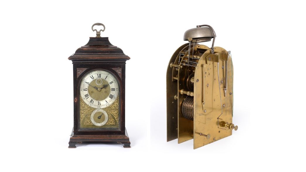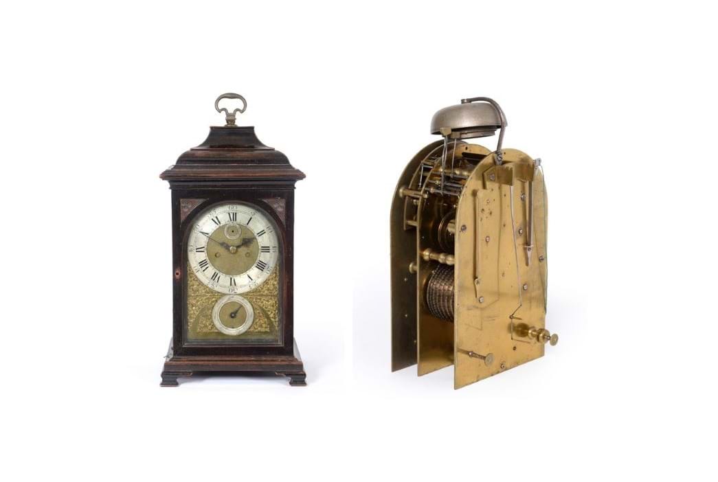 The top lot of the section was a mid-18th century quarter striking table clock made by Henry Hindley of York c.1750, which sold for £11,000 (plus buyer’s premium). Hindley, who was born near Wigan, was a very fine and talented clockmaker who made a clock for York Minster in 1750, and an almost identical clock to the present lot is on exhibition at Fairfax House in York. Selling strongly at £7,200 was a good George III Eight Day Dutch Striking Alarm Tableclock with Moonphase Display by Paul Rimbault of London, circa 1770, and a Rare Walnut Seaweed Marquetry Quarter Chiming Eight Day Longcase Clock, signed David Hubert, Londini, Fecit, circa 1710 sold for £5,200.