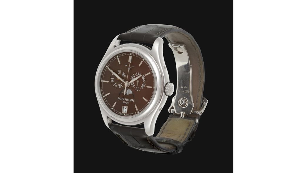 Two watches by Patek Philippe are also of note, the first being one of the most prestigious and desirable sports watches, a Patek Philippe “Jumbo” Nautilus ref:5711/1A-011, made circa 2013 (estimate: £40,000-50,000), and the second a Patek Philippe Annual Calendar ref:5146P-001, made circa 2009 (estimate: £25,000-35,000).