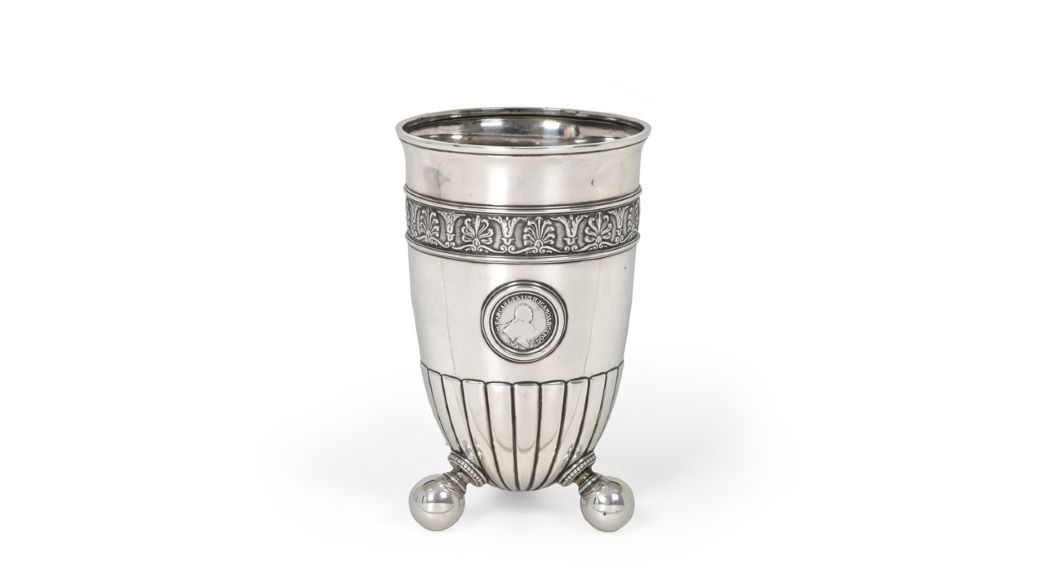 Also of interest is a George IV Silver-Gilt Snuff-Box, made by Fentem, Webster and Danby of Sheffield in 1824. Highly decorated with chased trailing foliage, flowers and lion’s masks, and panels depicting horse racing (estimate: £2,500-3,500). According to the inscription, the box was given to a ‘Mr Bowman’ for his efforts establishing racing in Rotherham. A further lot with Yorkshire interest is an Edward II Silver and Enamel Trophy, made by T. and J. Bragg Ltd of Birmingham in 1906, which was presented by the President of the National Fire Brigades Yorkshire District, The Right Hon the Earl of Londesborough, to the leading fire brigade each year (estimate: £1,500-2,500). Plaques recording winning fire brigades include those to Rolls-Royce, Brook Motors Ltd and Rowntree & Co.