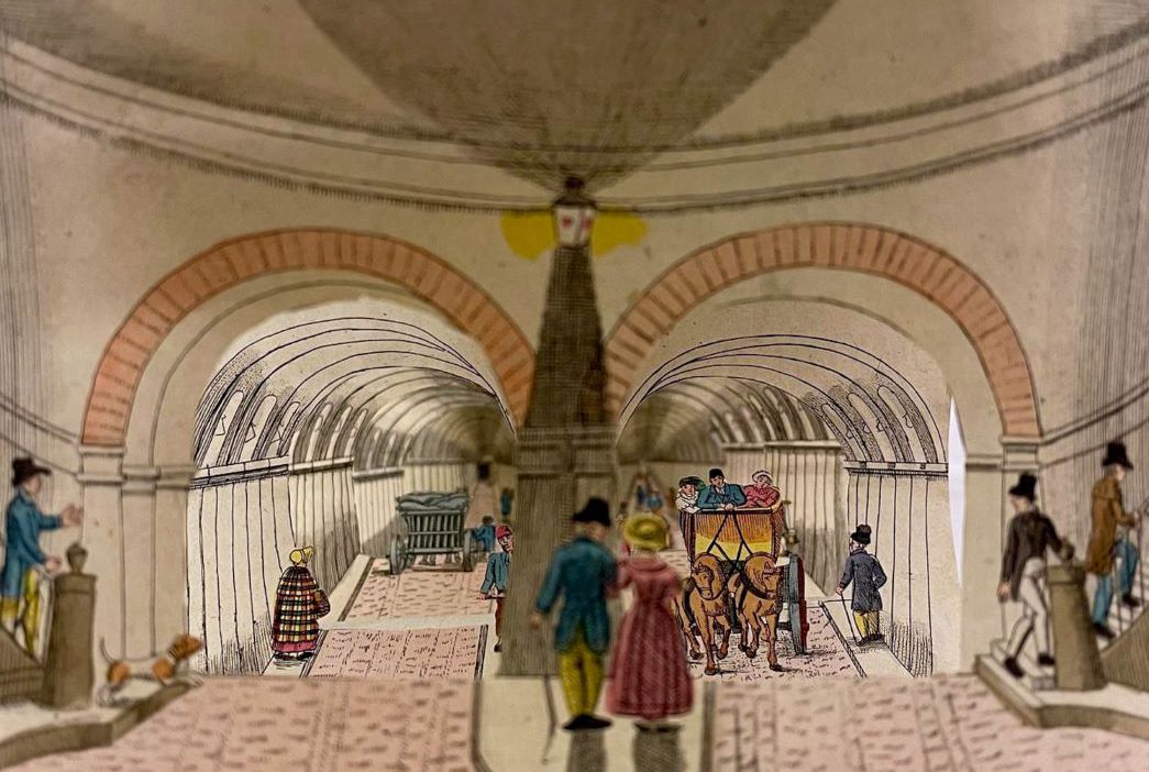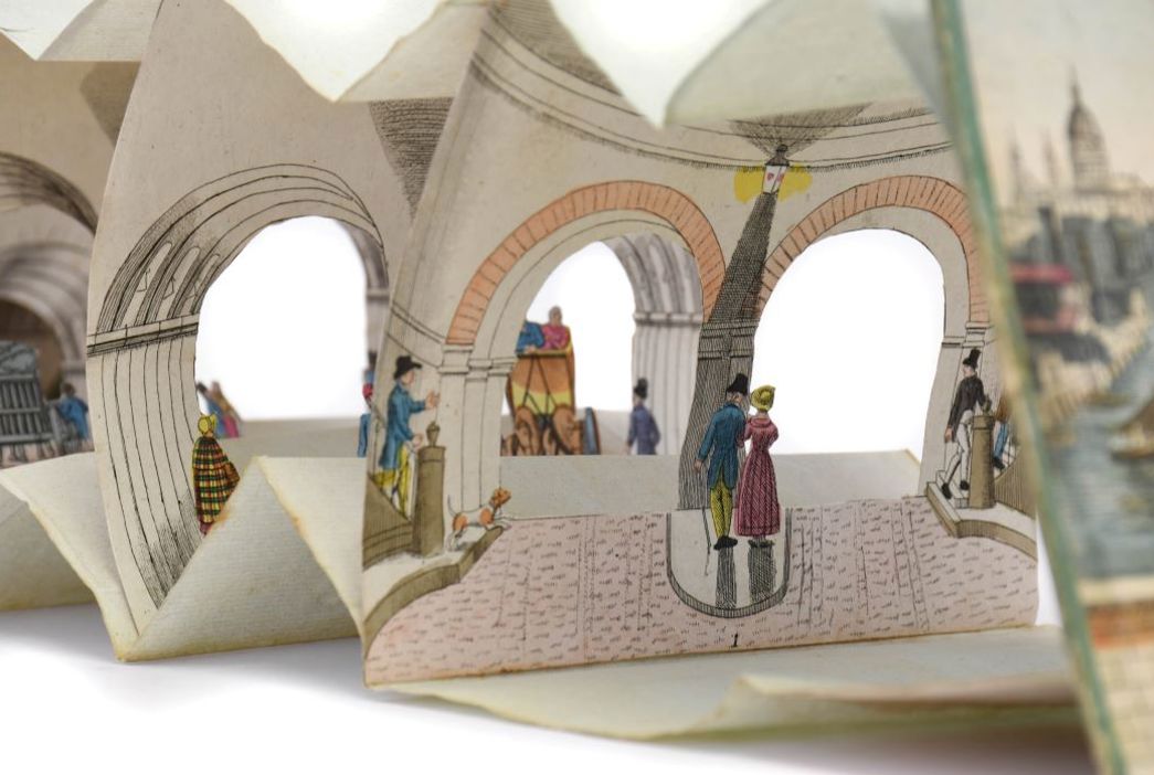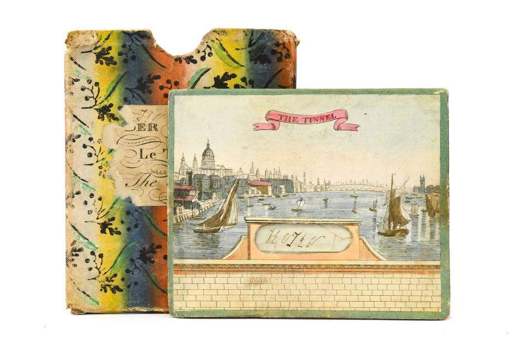 One of the most extraordinary feats of Victorian engineering is remembered in Tennants Auctioneers’ Books, Maps and Manuscripts Sale on 18th May, with a Paper Peepshow of the Thames Tunnel (estimate: £200-300 plus buyer’s premium). The tunnel was the first of its kind to be dug under a navigable river, made possible by the ingenuity of engineer Marc Brunel and his more famous son Isambard. From the early days of its construction between Rotherhithe and Wapping, which began in 1825, the tunnel became a popular subject for folded and cut paper peepshows that gave the viewer a three-dimensional view into what the tunnel would look like when it was completed. Whilst many peepshows were made to be sold as tourist souvenirs after the opening in 1843, it is likely that this is an early example as it shows horse drawn carriages in the tunnel; the ramp that would have allowed access for carriages into the tunnel was never built and it remained pedestrian only until it was converted into use by the railway in 1865.