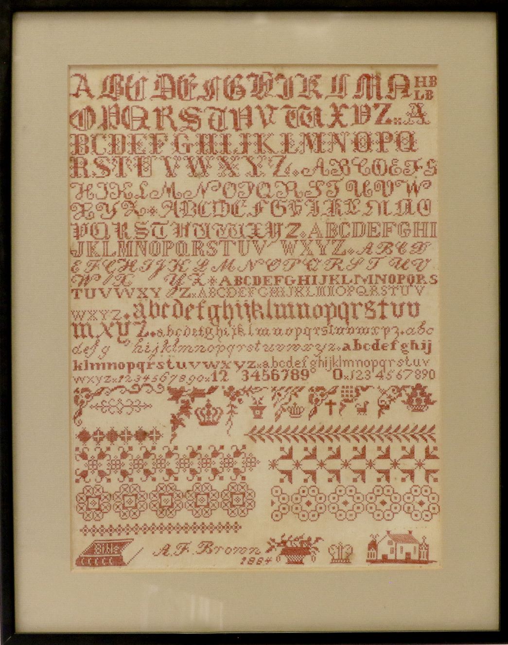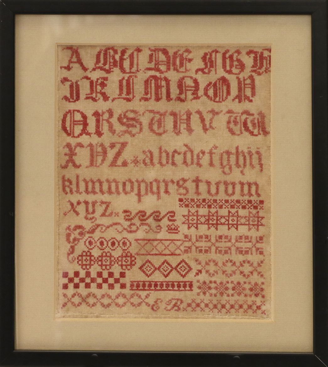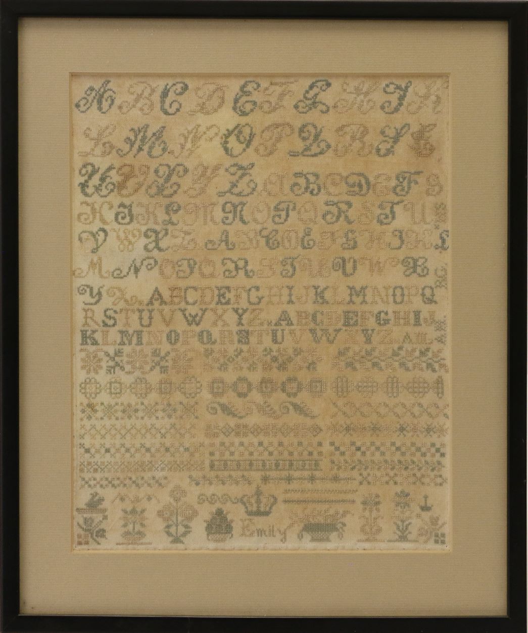 The present samplers were worked by girls at Ashley Down, Bristol, an extraordinary institution. At a time when there were very few orphanages and the only alternative was the workhouse, George Müller (1805-1898), a Christian preacher, built a vast orphanage from donations that would care for over 10,000 children in his lifetime. Müller gave his charges an education well beyond what was expected, kept the girls until they were 16 or 17 and made sure they had a position to go to before they left. The Ashley Down samplers follow a model that makes them instantly recognisable. Most often using red thread on pale linen, the girls worked the alphabet in different fonts across the top and personalised the bottom with a range of motifs, both characteristic of the school and of their own design. The examples now up for sale were worked by 'A F Broton' (estimate: £1,500-2,500 all figures exclude. buyer's premium), 'Emily' (estimate: £1,500-2,500), and 'EB' (estimate: £300-500). From the same private collection is a good 18th Century Aubusson Verdue Tapestry, depicting a bird surrounded by a pastoral landscape (estimate; £1,000-1,500).