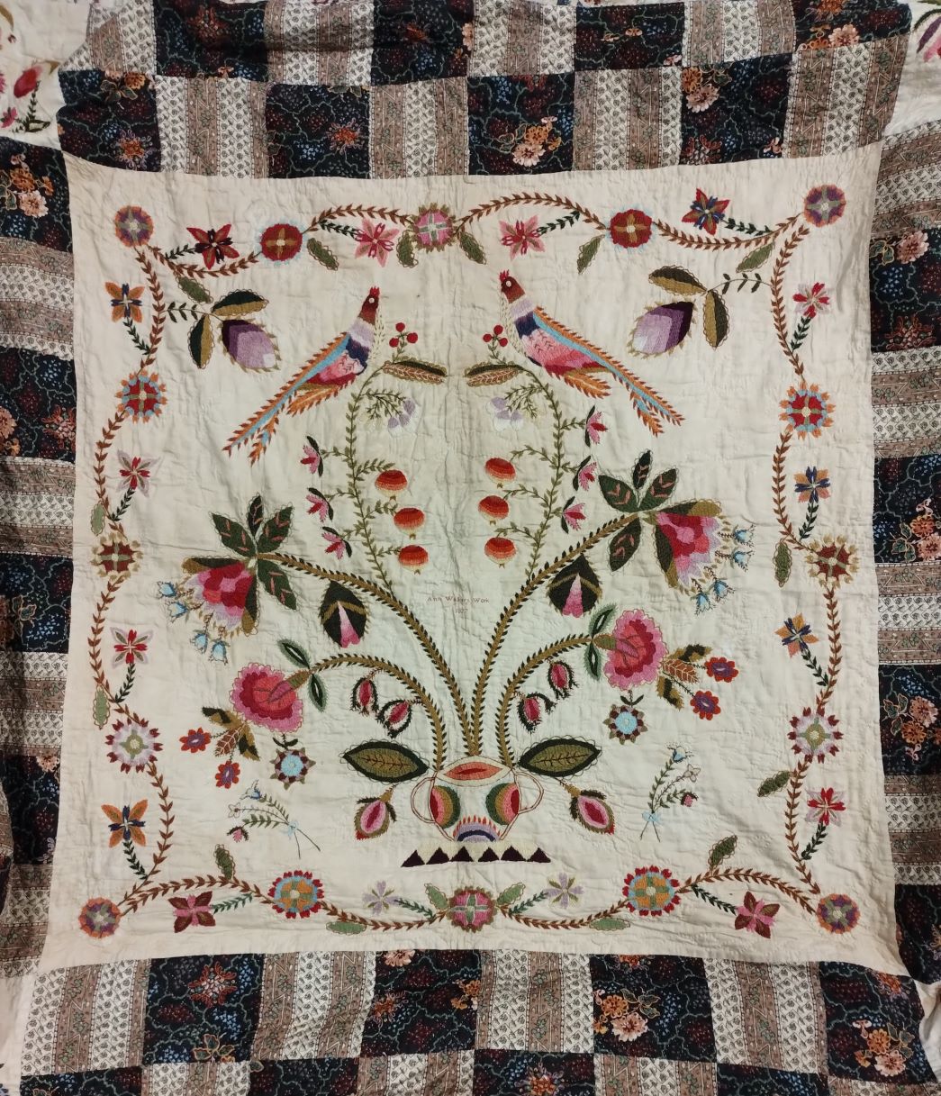 Two good 19th century quilts from a private collection include an Early 19th Century Patchwork Bedcover incorporating the Grandmother’s Flower Garden pattern and initialled and dated 1800 (estimate: £600-1,000), and a 19th Century Patchwork Quilt with a beautifully preserved, vibrant and colourful central hand-embroidered panel with birds and floral motifs and signed ‘Ann Walker’s Work 1827’ (estimate: £600-1,000). Amongst a number of good North Country quilts is a Late 19th Century Elizabeth Sanderson Pink and White ‘Star’ Quilt (estimate: £250-350).