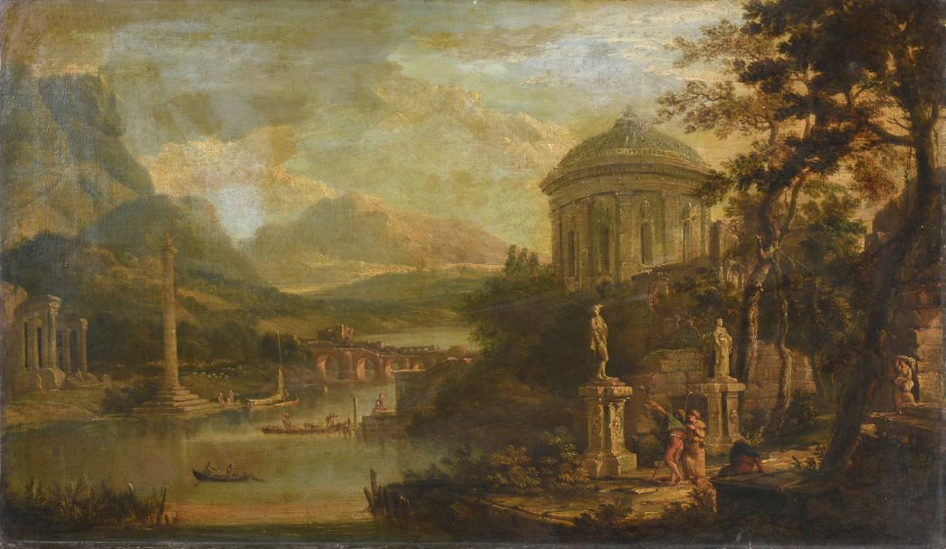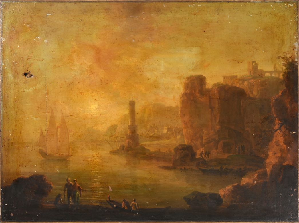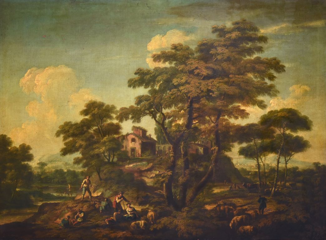 An interesting collection of 18th century Italian and Continental pictures consigned from a private collection in Scotland are also on offer in the sale. Highlights include ‘Figures at Classical ruins with an extensive river landscape beyond’ by the circle of Adriaen van Diest (1655-1704) (estimate: £3,000-5,000), ‘Figures before a port at sunset’ by the Circle of Francesco Fidenza (1747-1819) (estimate: £1,500-2,500), and ‘Pastoral scene with shepherds and other rustics’ by a Follower of Francesco Zucarelli (1702-1788) (estimate: £1,200-1,800). Also of note in the collection is a circa 1700 French School painting of ‘Christ displaying his wounds to his disciples’ (estimate: £2,000-4,000).
