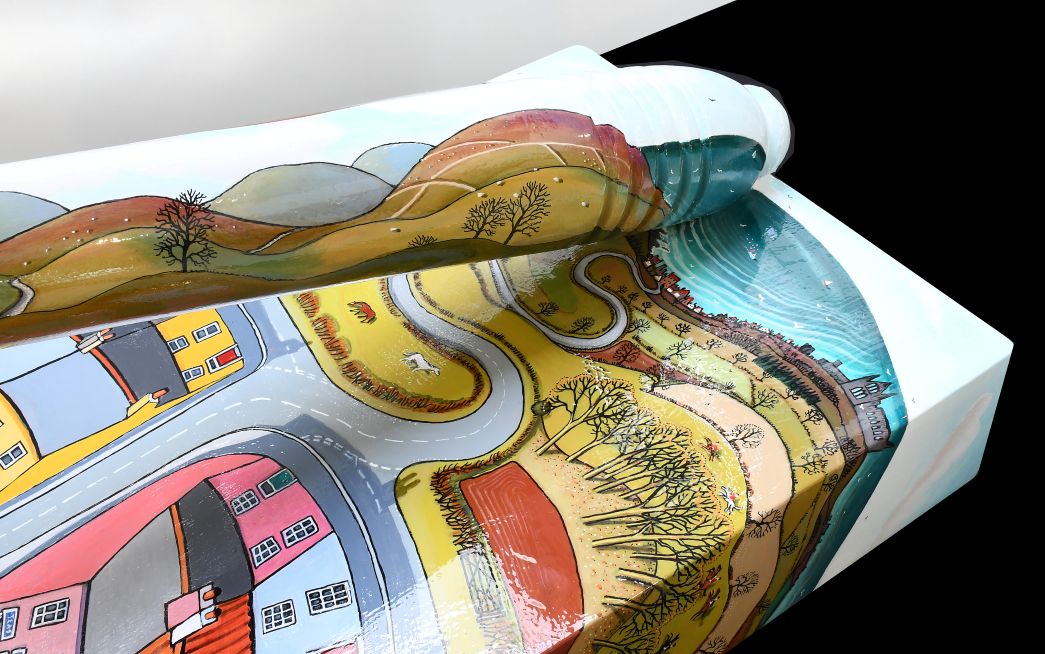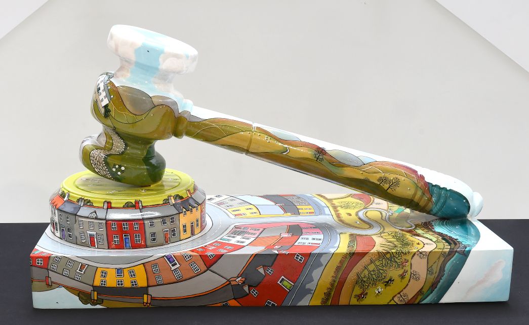 One of 15 gavels sponsored by UK auctioneers, Tennants gavel was created by Jonathan Armigel Wade, a Northern artist with a long-standing relationship with Tennants. His vibrant and imaginative sculpture captures the essence of Yorkshire in his signature ‘curvispective’ style—depicting the county’s landscapes from summer to winter, from the Dales to the coast.