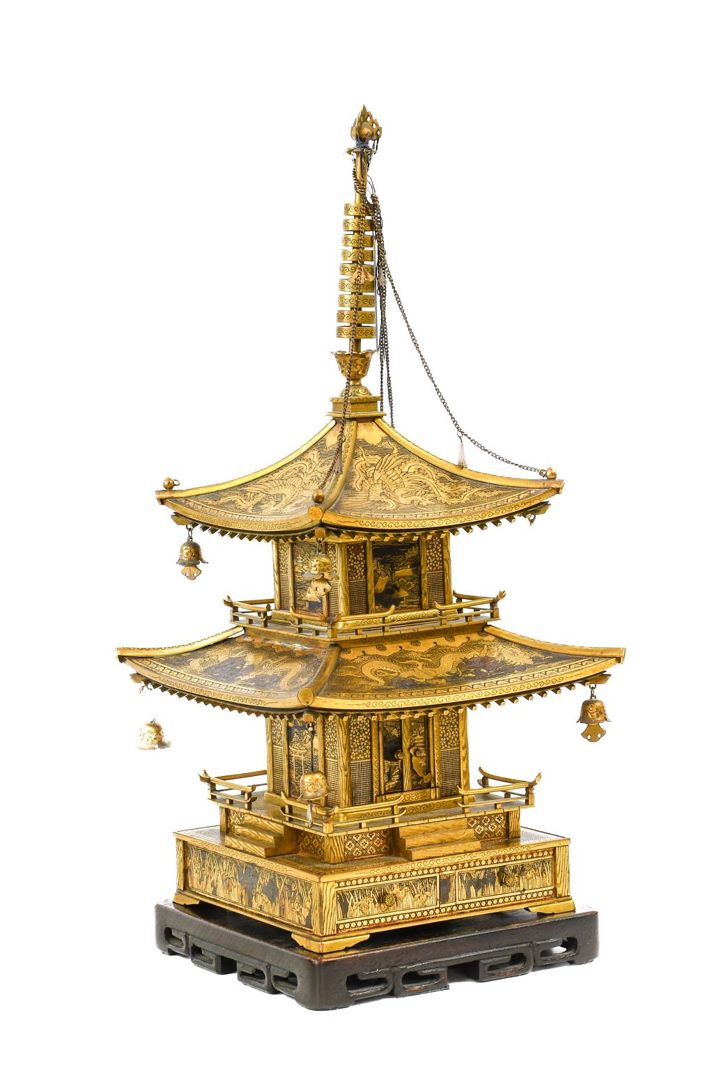 A pair of fine Chinese Porcelain Yellow Ground Medallion Bowls sold for £90,000 (plus buyer’s premium) in the Autumn Fine Sale at Tennants Auctioneers on 11th November, having attracted competing bidders from across the world. Bearing the Daoguang mark and made in the second quarter of the 19th century, the finely made bowls were painted in enamels with scenes of a goat, a sheep, and a ram. From the same collection came an early 19th century Chinese Porcelain Table Screen, painted in famille rose enamels with figures in a fenced garden, which smashed the £700-1,000 estimate to sell for £38,000. Also selling well in a strong Asian Art section was a Japanese Gilt and Patinated Bronze Temple of the Meiji period, which sold for £4,800.