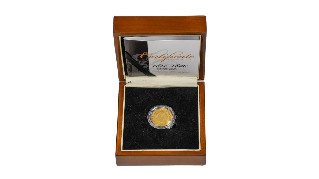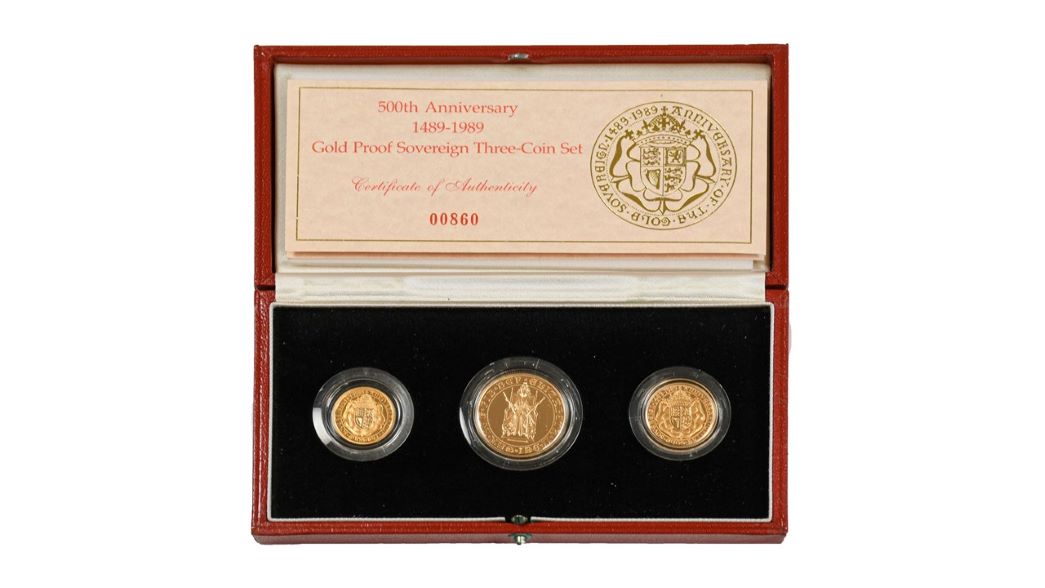 Further highlights of the sale included a Queen Victoria Golden Jubilee Gold and Silver Set from 1887; the 11-coin set sold for £3,000. A George III Sovereign of 1820 sold well, too, at £650. Featuring the laureate head of George III on the obverse, and the legend ‘HONI SOIT QUI MAL Y PENSE’ around the Pistrucci George and Dragon on the reverse, the coin was in Fine condition and sold with certificate of authenticity. Selling well above estimate at £2,700 was an Elizabeth II Gold Proof 3-Coin Sovereign Set from 1989, produced in commemoration of the 500th anniversary of the sovereign. It was set number 860 of a limited edition of 10,000 and sold with certificate of authenticity encapsulated in Royal Mint red leather case of issue.
