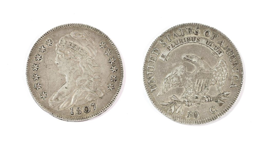 Of particular note is the scarcer ‘small stars’ variety of the ever-popular early American ‘Capped Bust’ Half Dollar 1807, very fine (estimate: £1,500-2,500), a James II Maundy Set from 1686 in a very fine+ condition (estimate: £200-300), and a lovely Edward VII ‘Short’ Matte Proof Set from 1902, fleur de coin (estimate: £1,500-1,800).