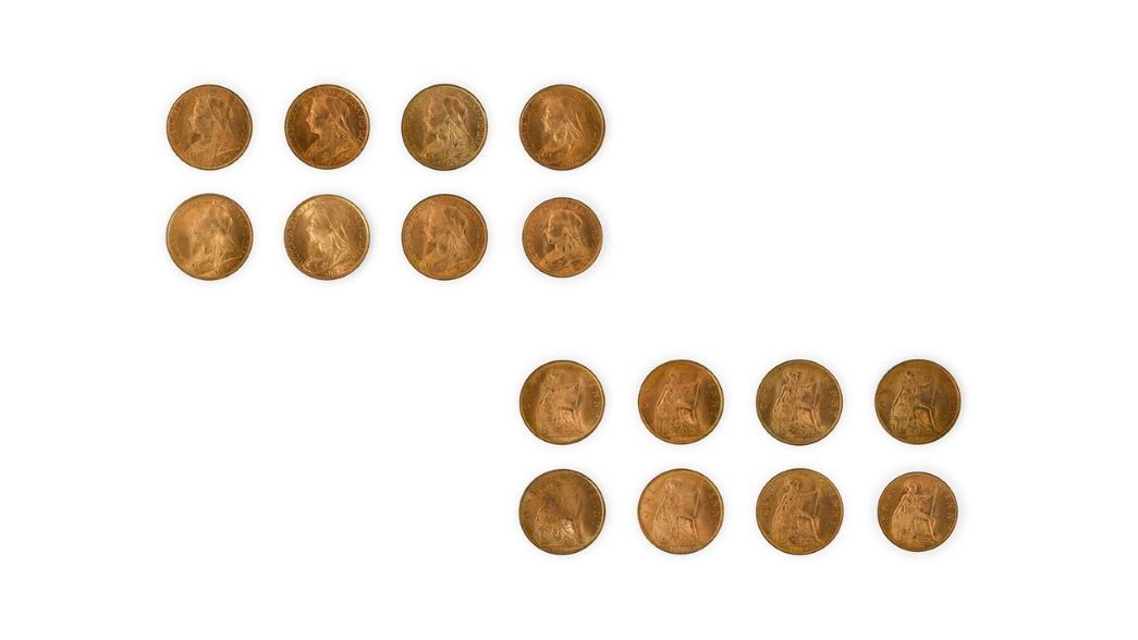 There is also a good lot comprising seven Victoria Old Head Pennies and a Halfpenny from 1899, which were collected new by the vendor’s great grandfather and put away carefully. Exhibiting full mint lustre, the pennies are offered with an estimate of £200-300.
