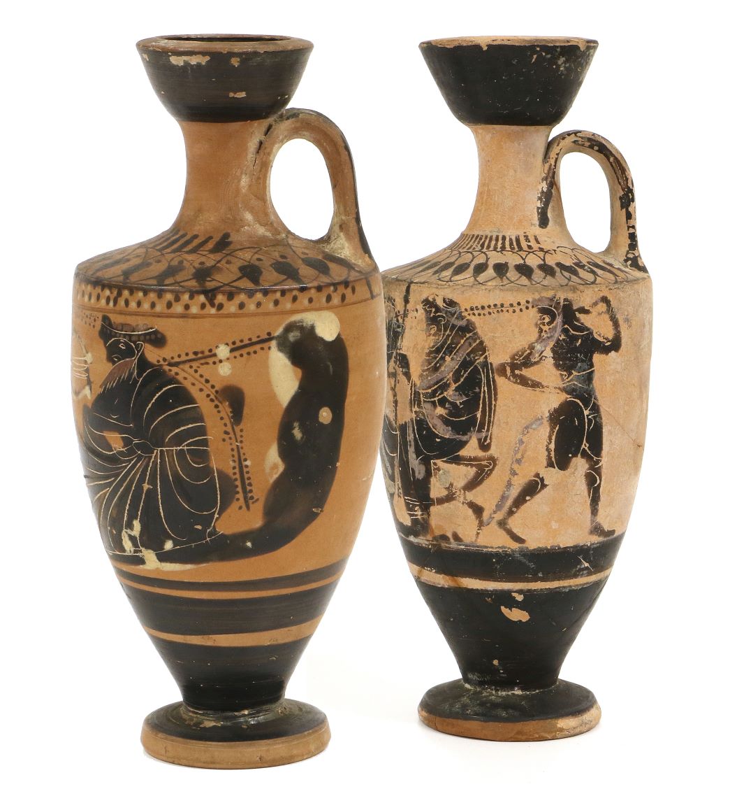 Further rare lots that piqued buyers’ interest included a 10th/11th Century Islamic Pottery Bowl, probably from Nishapur (sold for £2,000), an 18th Century Carved Oak Heraldic Lion that was once possibly a newel post finial (sold for £1,300), and a Pair of Tulipiere in Dutch Delft 17th Century Style made by Christian Dior (sold for £3,500). Amongst the traditional antiques on offer, notable results were seen for a Mid-19th Century Irish Killarney Yew and Arbutus Wood Work Table (sold for £3,200), a Pair of 20th Century Chinese Red Lacquer Marriage Cupboards (sold for £1,500), and a Late 17th Century Marquetry Eight Day Longcase Clock (sold for £2,200). Amongst the ceramics in the sale were a Pearlware Model of a Horse made circa 1800-10, probably in Newcastle, which sold for £1,200, a Chinese Porcelain Surprize Cup from the Tongzhi dynasty, which sold for £850, and two Etruscan/Attic Style Terracotta Black Figure Lekythos or Oil Ewers, which sold for £1,200. The ewers were reputedly purchased by the vendor’s great aunt and uncle during a cruise touring archaeological sites, during which time they are rumoured to have met Howard Carter.