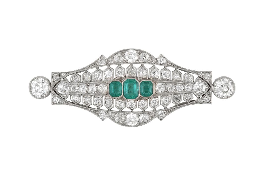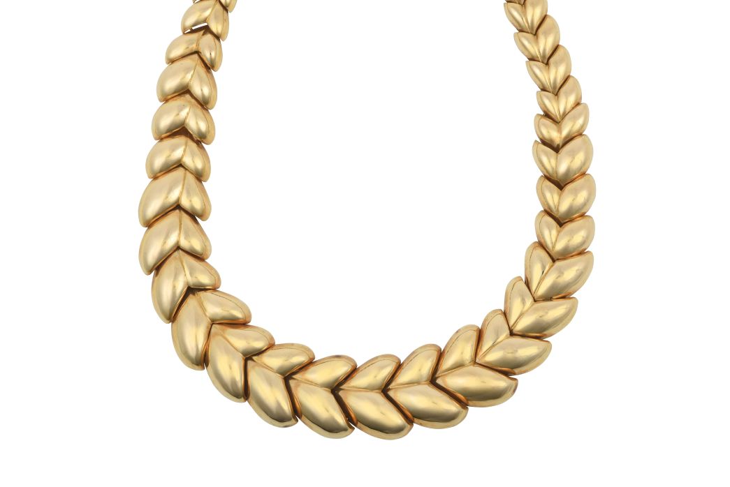In the centenary year of the legendary International Exhibition of Modern Decorative and Industrial Arts in Paris, a number of good Art Deco and Art Deco style pieces are offered in the sale, such as a Diamond Bracelet (estimate: £5,000-7,000), and a delicate Art Deco Emerald and Diamond Brooch (estimate: £2,000-3,000). Emeralds are noticeably in demand at present, and interesting examples in the sale include an 18 Carat White Gold Emerald and Diamond Cluster Ring with features an impressively sized stone in excess of 11 carat (estimate: £7,000-10,000). Intricately wrought is a circa 1900 En Tremblant Emerald, Opal, Ruby and Diamond Butterfly Brooch; of substantial size, elements of the brooch are held on wires and designed to tremble and move in a mesmerising manner when worn (estimate: £5,000-7,000). Also on offer are jewels by iconic jewellery designers, such as a Leaf Necklace by Tiffany & Co. (estimate: £6,000-8,000).