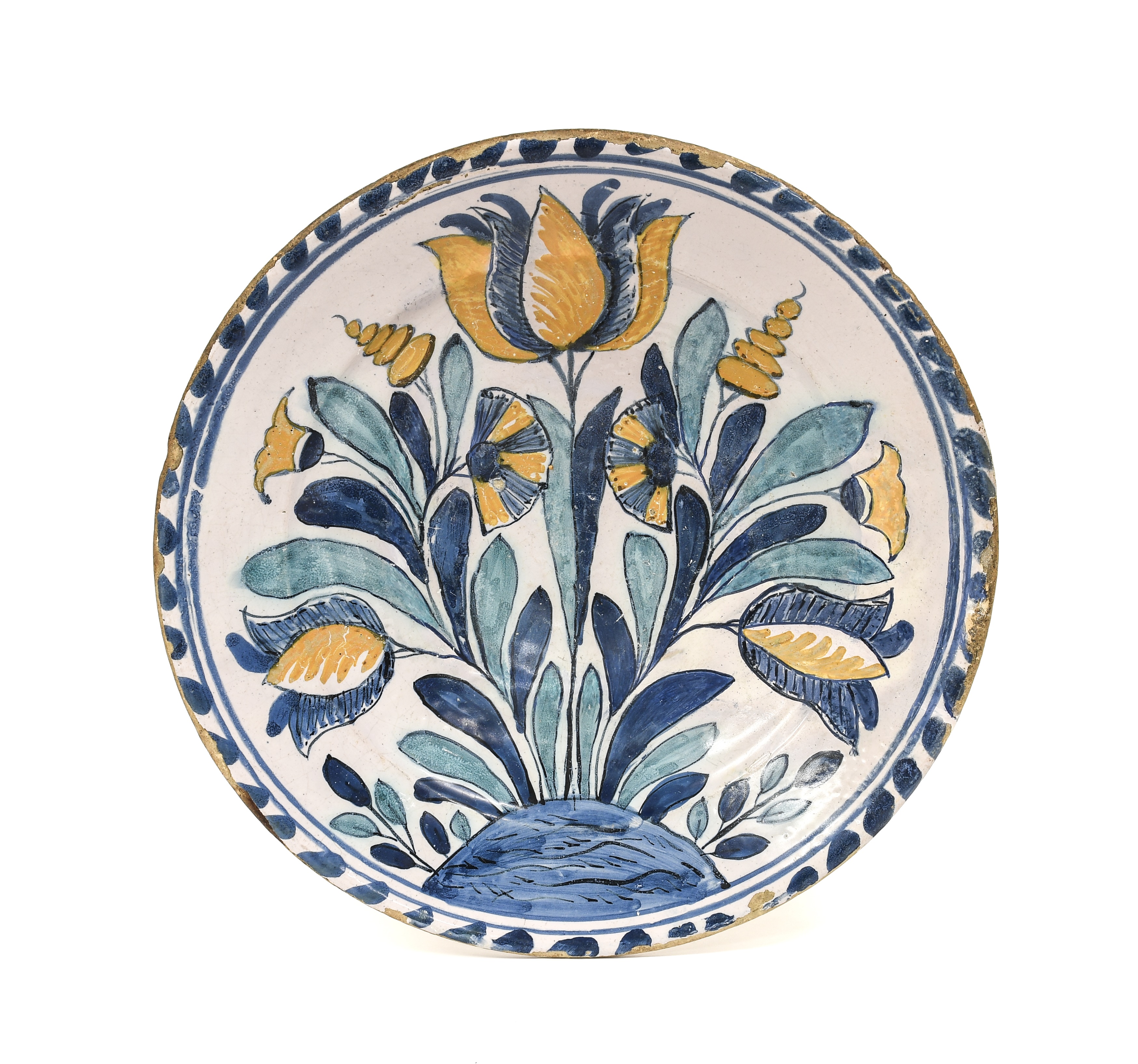Amongst a good selection of Sèvres porcelain in the sale is an 1827 ‘Etrusque’ Tea Service, decorated with flowers and gilt foliate borders (estimate: £3,000-5,000), and a selection of biscuit porcelain figures from a private collection including dancing couples and the pair ‘Les Trois Graces Portant L’Amour’ and ‘Bacchus Porte Par Les Bacchantes’ made circa 1775 (estimate: £3,000-4,000). Further notable ceramics come from the Estate of Stephen Hamilton Rawlins of Scarborough, which includes a good offering of Toby Jugs, including a circa 1790 Ralph Wood Type Pearlware Sailor Toby Jug (estimate: £600-800), and an interesting circa 1690 English Delft Blue Dash Charger, probably made in Brislington and decorated with tulips (estimate: £1,000-1,500). A second good Private Collection, this time focusing on 18th glass and English ceramics including Prattware, Pearlware, Creamware and Whieldon-type figures includes interesting lots for collectors such as a Whieldon-Type Creamware Bull-Baiting Group made circa 1770 once in the C.B. Kidd Collection (estimate: £500-700).