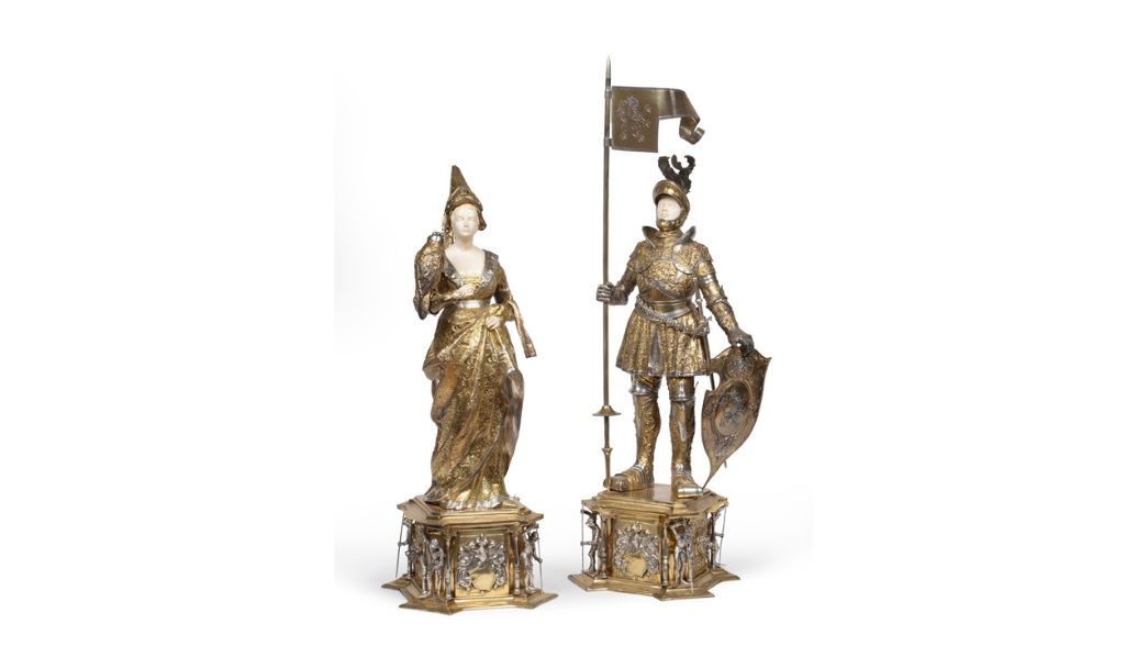 Highlights of the Silver Section include a set of three George III Silver Salvers by Richard Rugg, London, 1776 (estimate: £8,000-12,000). Engraved with the Vavasour arms for Sir Walter Vavasour, 6th Baronet (1744-1802). The Vavasour resided at Hazelwood Castle, near Leeds before it was sold in 1907. An impressive pair of German parcel-gilt silver and ivory figures by Wilhelm Weinranck of Hanau near Frankfurt from the first quarter of the 20th century, realistically modelled as a Knight and a Lady in period costume are on offer with an estimate of £6,000-8,000. Intricately and finely decorated, Hanau was long a centre of producing silver objects inspired by silver from an earlier age. Also of note are a George III silver basket by John Wakelin and William Taylor of London, 1780 (estimate: £4,000-6,000) and a Charles II silver tumbler-cup, attributed to Thomas Mangy of York, 1673 (estimate: £3,000-5,000). Despite lacking a maker’s mark, this cup compares closely to other known examples by Thomas Mangy. Mangy was from an extensive family of silversmiths working in York in the 17th century and was at least the third generation. He was a silversmith of some talent.