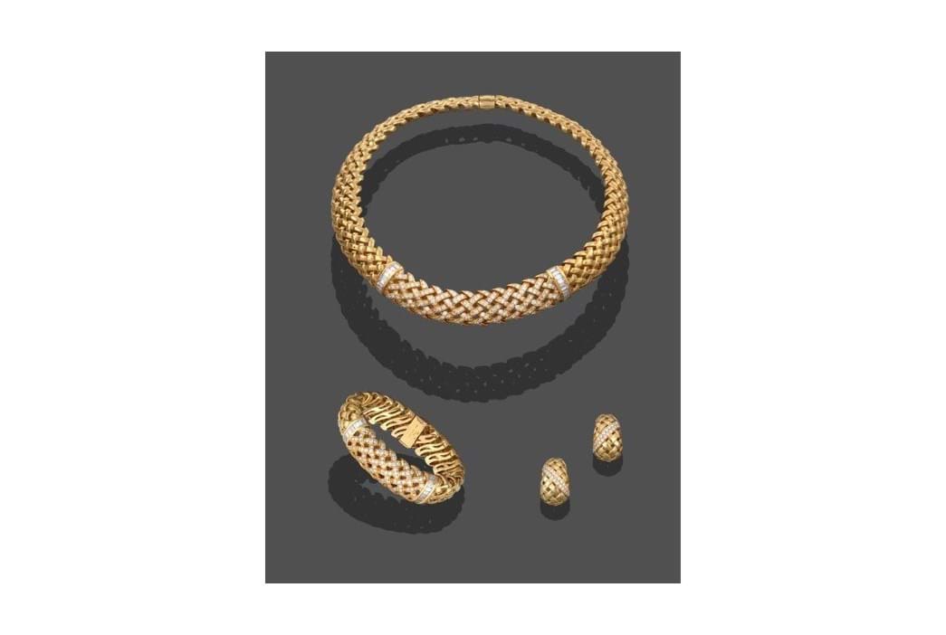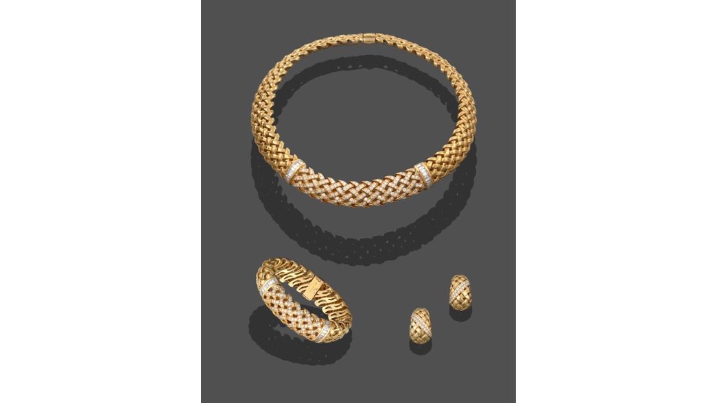 Further lots of note in the sale included a Diamond Necklace, Bracelet and Earring Suite by Tiffany & Co., which sold for £13,500, a Diamond Cluster Ring with fancy light brownish-pink emerald cut diamond, which sold for £11,000, and an Arts and Crafts Style Silver Gem Set Necklace and Earring Suite in the manner of Sibyl Dunlop dated 1964, which sold for £4,000.