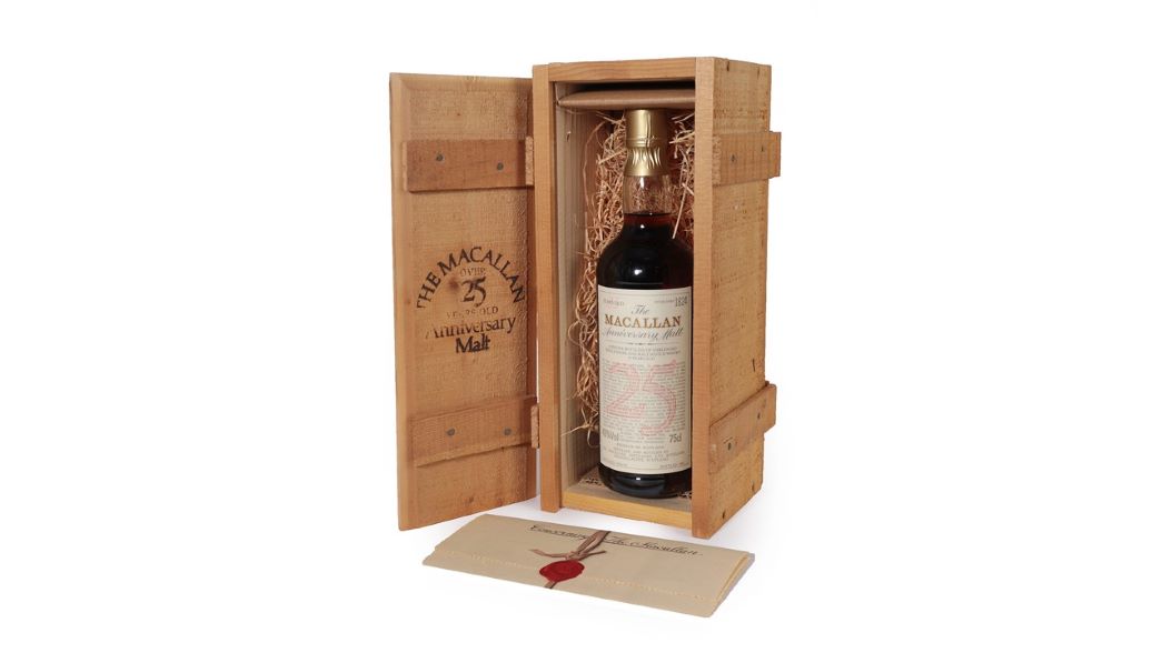 Macallan continues to dominate the market, and the top bottles of whisky in the sale hail from the renowned highland distillery. On the top shelf is The Macallan 30 Years Old Single Highland Malt Scotch Whisky (estimate: £5,500-6,500), and The Macallan 25 Years Old Anniversary Malt (estimate: £2,000-3,000). A rare bottle, the Anniversary Malt was a special bottling in 1985, marrying two sherry matured casks of single malt whisky which were distilled in 1958 and 1959.