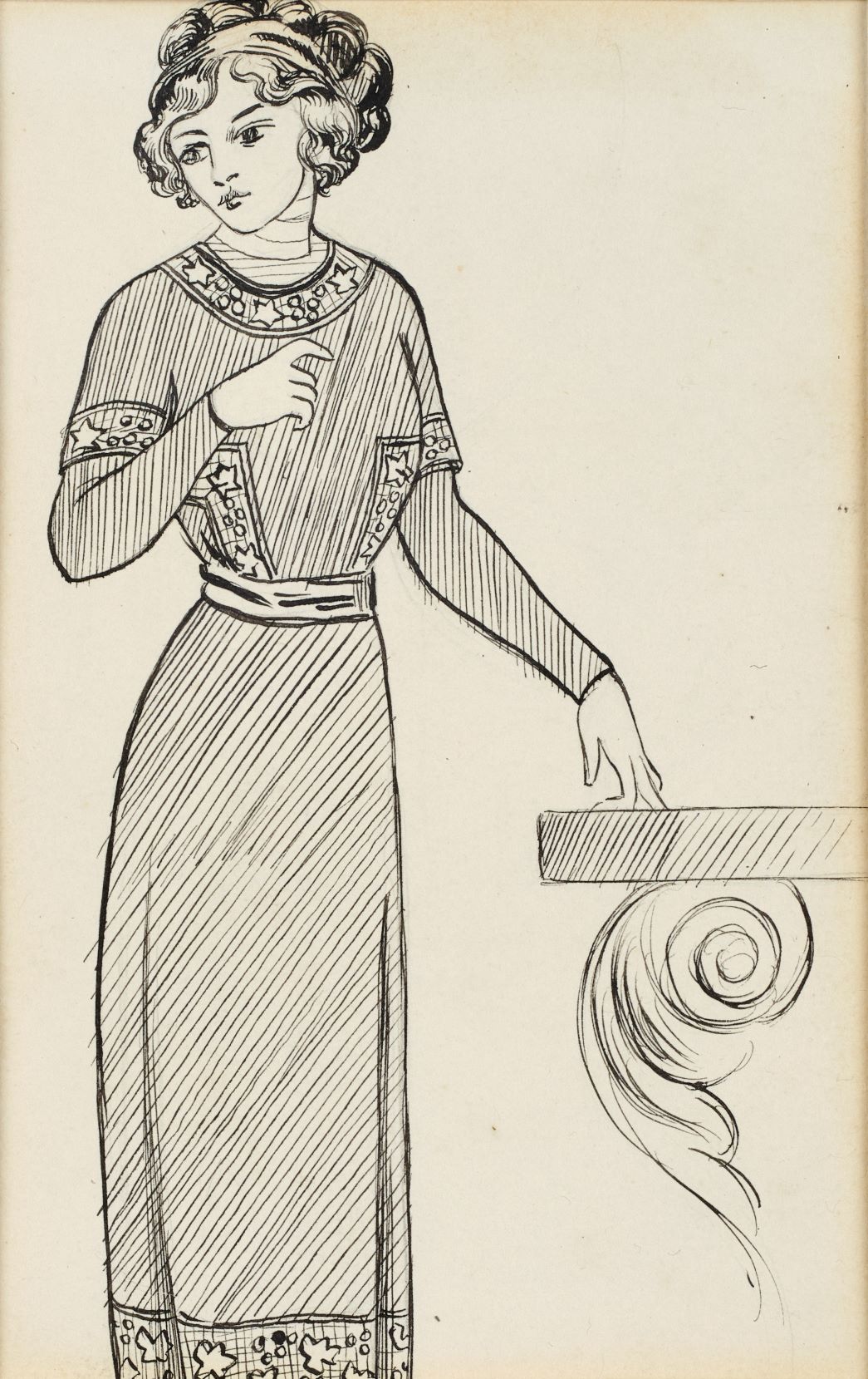 From the same vendor is “Kitty Smith” or “Kate in the Hall”, a pen and ink drawing by the artist (estimate; £2,000-3,000). As a teenager Gaudier-Brzeska had moved to the South West of England to study English business methods, and stayed with the Smith family in Bristol. Having moved to Cardiff in 1908, on a return visit to the Smiths the following year he drew Kitty in her new best dress and presented her with the picture.