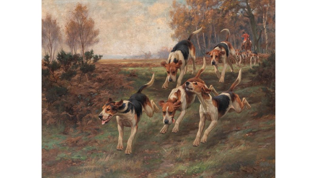 Wright Barker (1864-1941) was known for his bold yet highly detailed animal paintings, with hunting being a particularly favourite subject. Barker was born in Bradford but lived after marriage near Newark. Following a spell in Hampstead, Barker finally settled in Harrogate where he turned his hand to art dealing in addition to his work as an artist.
