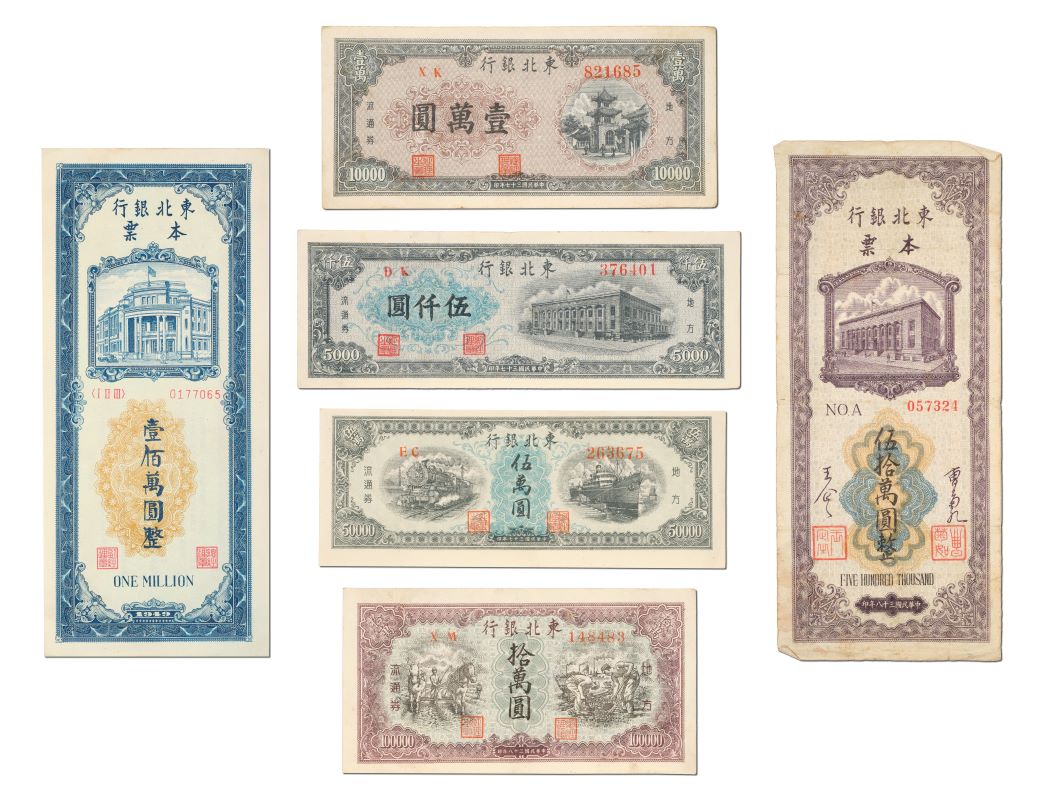 Highlights of the international section of the sale were led by a group of early 20th century China/Russian Far East Assorted Harbin Local Issue Notes, which sold for £4,000 (all figures exclude buyer’s premium). Harbin in North East China had a very large Russian population between the late 19th and mid-20th century, having been settled during the building of the Russian-constructed Chinese Eastern Railway. The notes included those issued by the Harbin Municipal Government, as well as private issues, local issues, vouchers from the Chinese Eastern Railway Company, Russian share certificates and restaurant coupons. Also selling for £4,000, was a selection of high denomination issues and promissory notes from the Tung Pei Bank of China, and a further selection of notes from the same bank sold for £1,850, both issued in the 1940s.