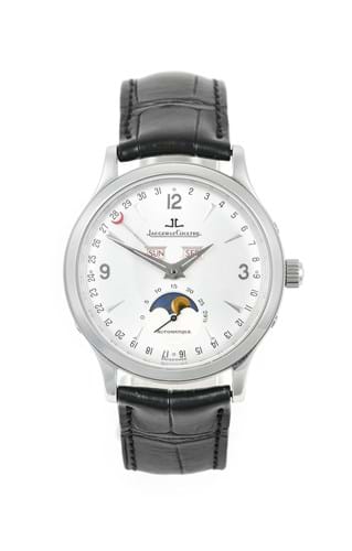 Jaeger LeCoultre: A Stainless Steel Automatic Triple Calendar Moonphase Display Wristwatch, signed Jaeger LeCoultre, model: Master Calendar, ref: 140.8.98.S, circa 2000, (calibre 891/2/448)