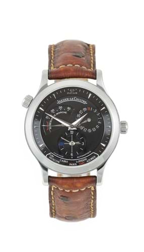 Jaeger LeCoultre: A World Dual Time Zone Automatic Power Reserve Day and Night Indication Wristwatch signed Jaeger LeCoultre, model: Master Control Geographic World Time, ref: 142.8.92S, circa 2001