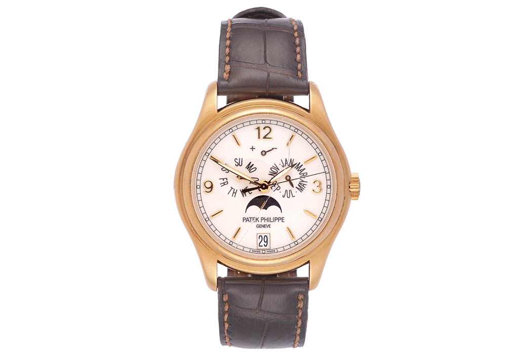 Amongst a selection of modern luxury collector’s watches is a Pasha De Cartier 32 Joaillerie white gold and diamond set watch. Encrusted with 246 round-cut diamonds, the watch was purchased from Cartier on the Dutch Caribbean island of Sint Maarten and is offered with an estimate of £40,000-50,000 plus buyer’s premium. Also of note is a fine 18ct yellow gold Patek Philippe reference 5146J-001, offered with an estimate of £15,000-18,000 plus buyer’s premium.