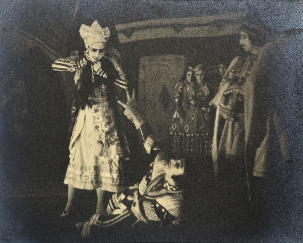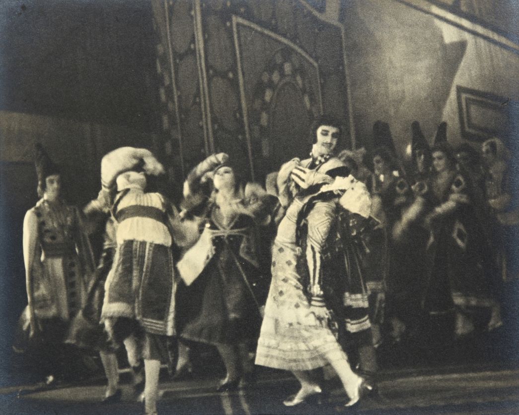 In the early 20th century ballet was at the cutting edge of culture, an avant garde art form, and inspired collaboration amongst the most radical artists of the period. Vaughan attended performances night after night, frequently photographing the dancers from his seat or from the side of the stage. Several albums of photographs by Vaughan exist, but this album from 1936 captures a performance of ‘Thamar’ which tells the story of the seduction of a sailor by the sadistic Queen of Georgia. A lavish display of Orientalism and with music by Mily Balkirev, the ballet had first been performed in 1912 and was revived in the mid-1930s with Lubov Tchernicheva dancing the title role as depicted by Vaughan. Tchernicheva had an extraordinary stage presence, and was celebrated for her highly expressive performances, captured beautifully in this rare and atmospheric set of 12 silver gelatin prints.