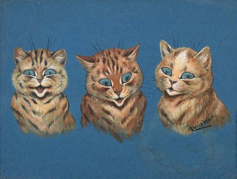 From childhood he saw the world differently, sometimes unable to separate the real world and his imaginary one and plagued by terrifyingly vivid dreams. He was a sickly child and difficult youth who eventually settled on a career in art, studying at the West London School of Art before going on to teach there. He aimed, however, for a career as a popular illustrator rather than as a serious artist, contributing to newspapers and journals. Wain’s artistic breakthrough came when he started producing whimsical cat illustrations - often dressed in human clothing, engaging in lively activities, and displaying expressive, almost mischievous personalities. These images quickly became immensely popular, disseminated through books, postcards and magazine covers.
