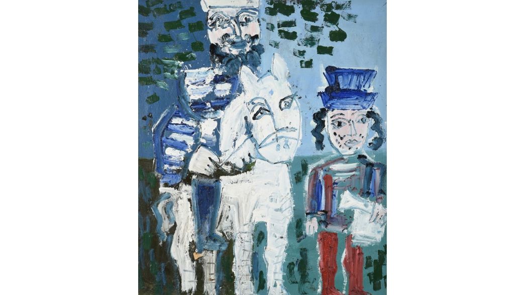 This small painting encapsulates Lowry’s ability to capture the essence of everyday life in the industrial North. Industrial buildings and church spires loom large over the margins of the park, providing a backdrop to the vast open tract of land, dotted with figures receding into the distance. But it is the vibrant and dynamic group of figures in the foreground that provide the focus of the composition; men and women, teens, children and dogs mingle and move in front of us, demonstrating Lowry’s inimitable skill in capturing a snapshot of life in the bustling industrial North. Lowry’s distinctive but limited colour palette used on a flake white ground is in evidence, too. The artist once said of his work ‘I am a simple man and I use simple materials; ivory black, vermillion, Prussian blue and yellow ochre’.