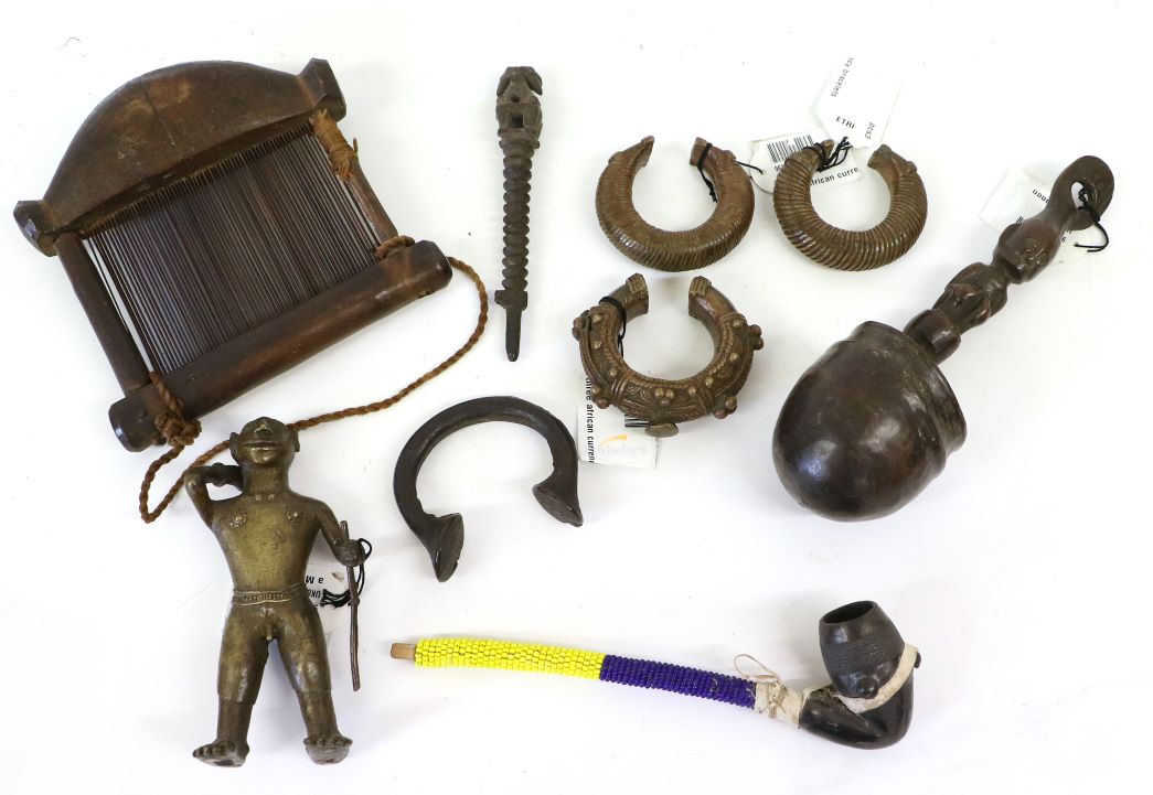 Elsewhere in the sale, a Princess Mary 1914 Christmas Tin containing the original waxed paper wrapped packet of plain chocolate sold for £850, an Elizabeth II Side Drum to the 1st Battalion The Duke of Wellington’s (West Riding) Regiment sold for £850, and a Late 19th Century Bagpipe Banner to 72nd Duke of Albany’s (1st Seaforth Highlanders) sold for £850. Amongst the bladed weapons in the sale a group of three 19th Century Indian weapons, led by a Talwar, sold for £3,800, an Imperial Russian Model 1881 Type Shashka sold for £2,000, and an Early 19th Century Naval Officer’s Dirk sold for £1,300. The top lot of ethnographica was a group of African objects, notably including an African Wood Spindle or Shuttle for a Loom with a figural pommel, sold for £2,500.