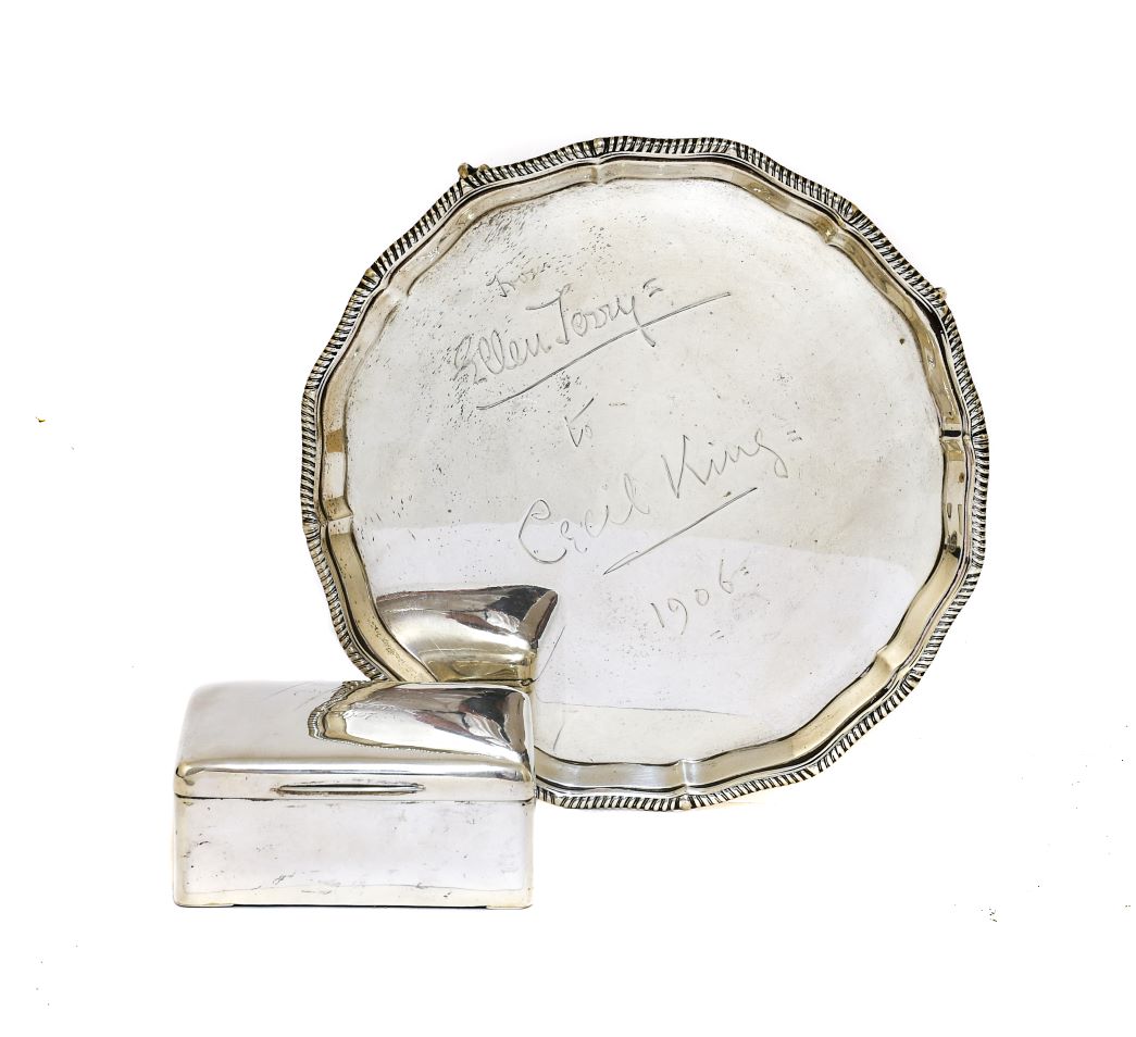 Silver mementos given by two stars of the stage to Cecil King, stage manager at His Majesty’s Theatre, London, are to be included in the Antiques & Interiors Sale on 9th September having been passed down through King’s family.
