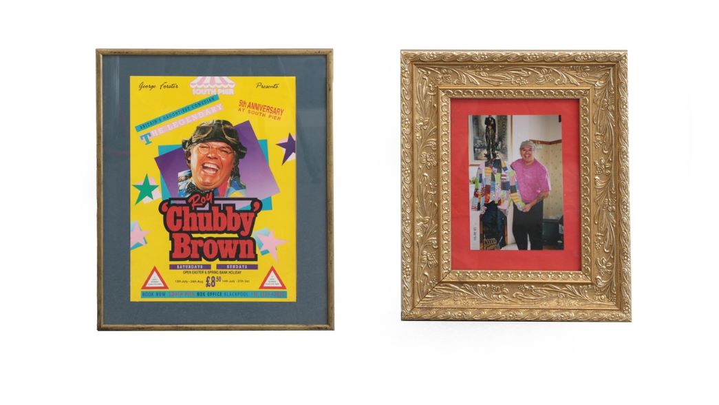 A colourful patchwork suit worn by the larger-than-life comedian Roy ‘Chubby’ Brown is amongst a broad range of memorabilia from the world of Film, Football and Comedy on offer at Tennants Auctioneers’ Toys, Models, Collectables and Sporting Sale on 30th July. Middlesbrough born Brown was well-known for his bawdy and often offensive comedy, and distain for political correctness. A distinctive figure, he always wore a clown-like stage costume consisting of a bright patchwork suit and slippers topped with a leather flying cap and goggles. The suit is now up for auction with an estimate of £400-600 plus buyer’s premium and is accompanied by a photograph of the comedian holding the jacket in 2001 and an advertising poster for a Roy ‘Chubby’ Brown show at South Pier, Blackpool.