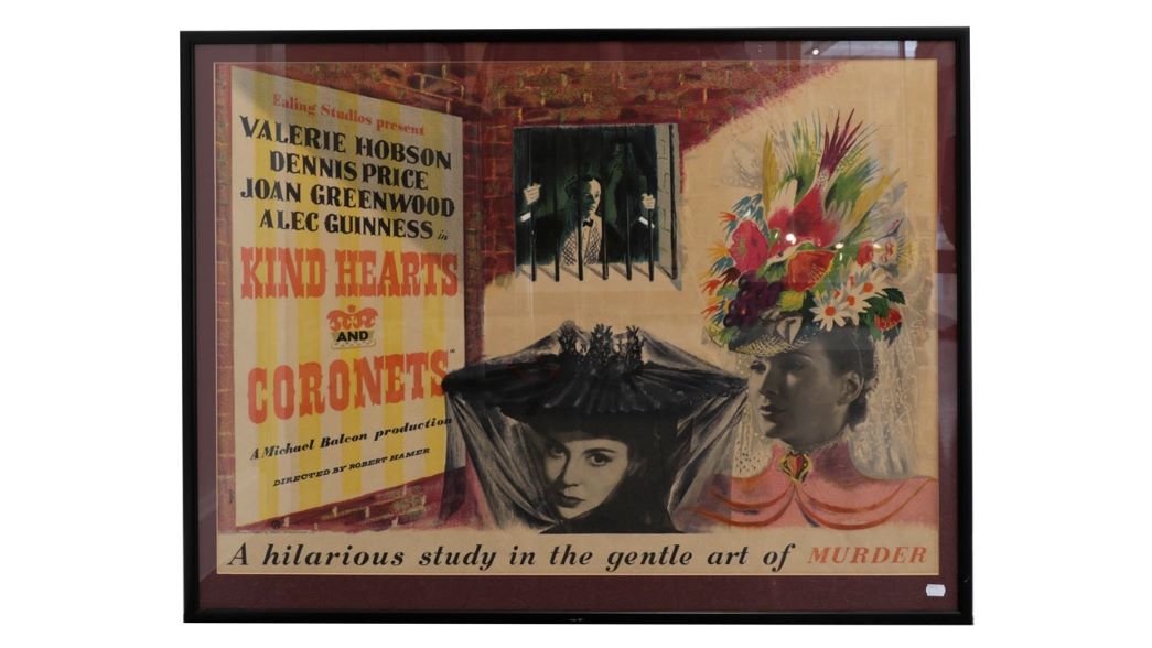 Also up for sale is a Private Collection of vintage film posters and limited edition reproduction posters. Highlights of the collection include a poster for The Lavender Hill Mob (1951) starring Alec Guinness and Stanley Holloway (estimate: £1,200-1,800), Kind Hearts and Coronets (1949) starring the likes of Joan Greenwood and Alec Guinness (estimate: £800-1,200), and ‘The Man in the White Suit’ (1951) (estimate: £600-900).