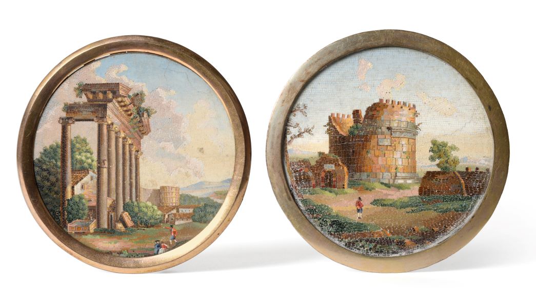 Throughout the 18th and 19th centuries Roman micromosaics became finer and more naturalistic, with advances in techniques leading to extraordinarily painterly pieces executed in a great range of colours. Often set into jewellery, decorative boxes, and tabletops, micromosaics were disseminated throughout Europe and are now much in demand at auction. High prices are achieved for works by some of the great masters such as Giacomo Rafaelli, Fortunato Pio Castellani and Michaelangelo Barberi, however, very few micromosaics are signed or attributable to individual craftsmen. Buyers look out for fine, naturalistic pieces, many of which could be mistaken for a traditional painting at a distance, and attractive schemes set in marble and metal surrounds.
