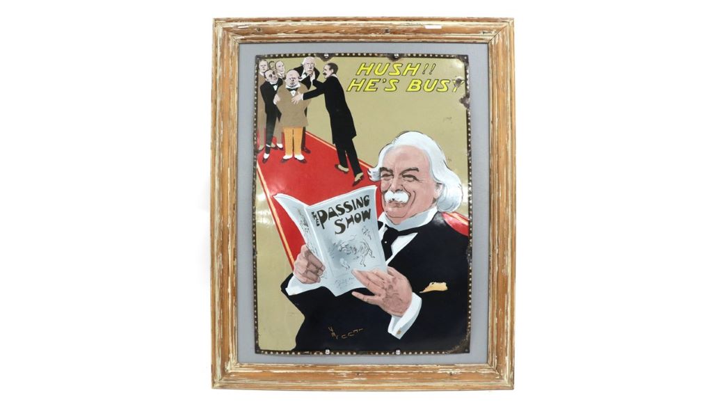 A small private collection of World War I and World War II propaganda and recruiting posters and signs sold well throughout. The top lot of the collection, selling for £1,200, was an Early 20th Century Enamel Advertising Sign for ‘The Passing Show’ magazine. The sign depicted Lloyd George seated reading the magazine whilst his steward restrains members of his War Cabinet with an inscription stating ‘Hush!! He’s Busy’.