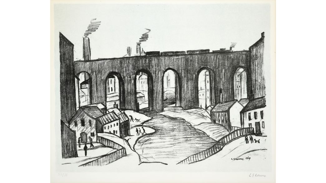 The market for prints after L.S. Lowry remains vibrant, and this sale features a strong offering, including a signed and numbered black and white lithograph of “Salford Viaduct” (estimate: £7,000-10,000). Hand printed lithographs after Lowry are rarely seen at auction; they were released in the 1960s in editions of 75 from drawings created solely for reproduction. The present print is number 32/75. Also of note is a print of Lowry’s famous “Going to the Match” (estimate: £15,000-20,000).