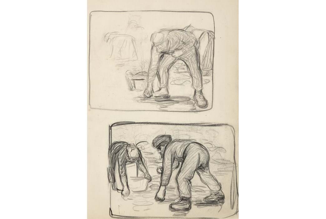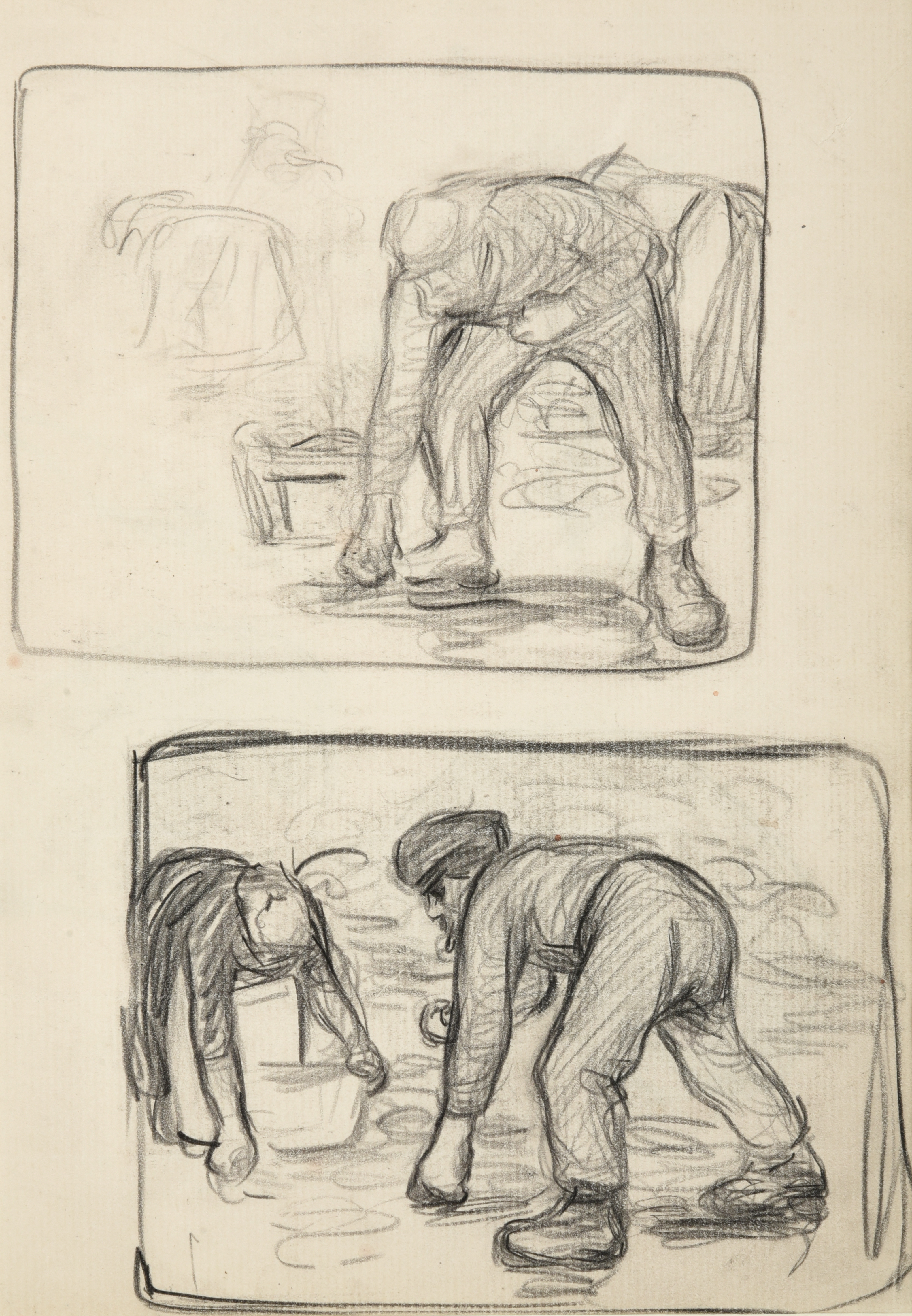 There is something exciting about seeing an artist’s sketches. For me a sketchbook brings the artist to life because, like a written journal, it gives insight into the things which they felt important enough to put to paper and it is where their creative process begins. These sketches of fisherfolk are straight from Dame Laura Knight’s sketchbook. I like the idea of the artist drawing the people who she was surrounded by as they did everyday things like beachcombing. She was known for getting to know the people in the communities where she painted and found beauty in people’s day-to-day lives, as is clearly demonstrated in these works.